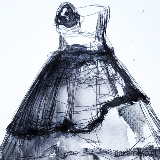 Subtelna, kobieca grafika wykonana techniką mieszaną (akwarela+tusz) na białym, matowym o lekko fakturowanej powierzchni, graficznym papierze Canson 250g.