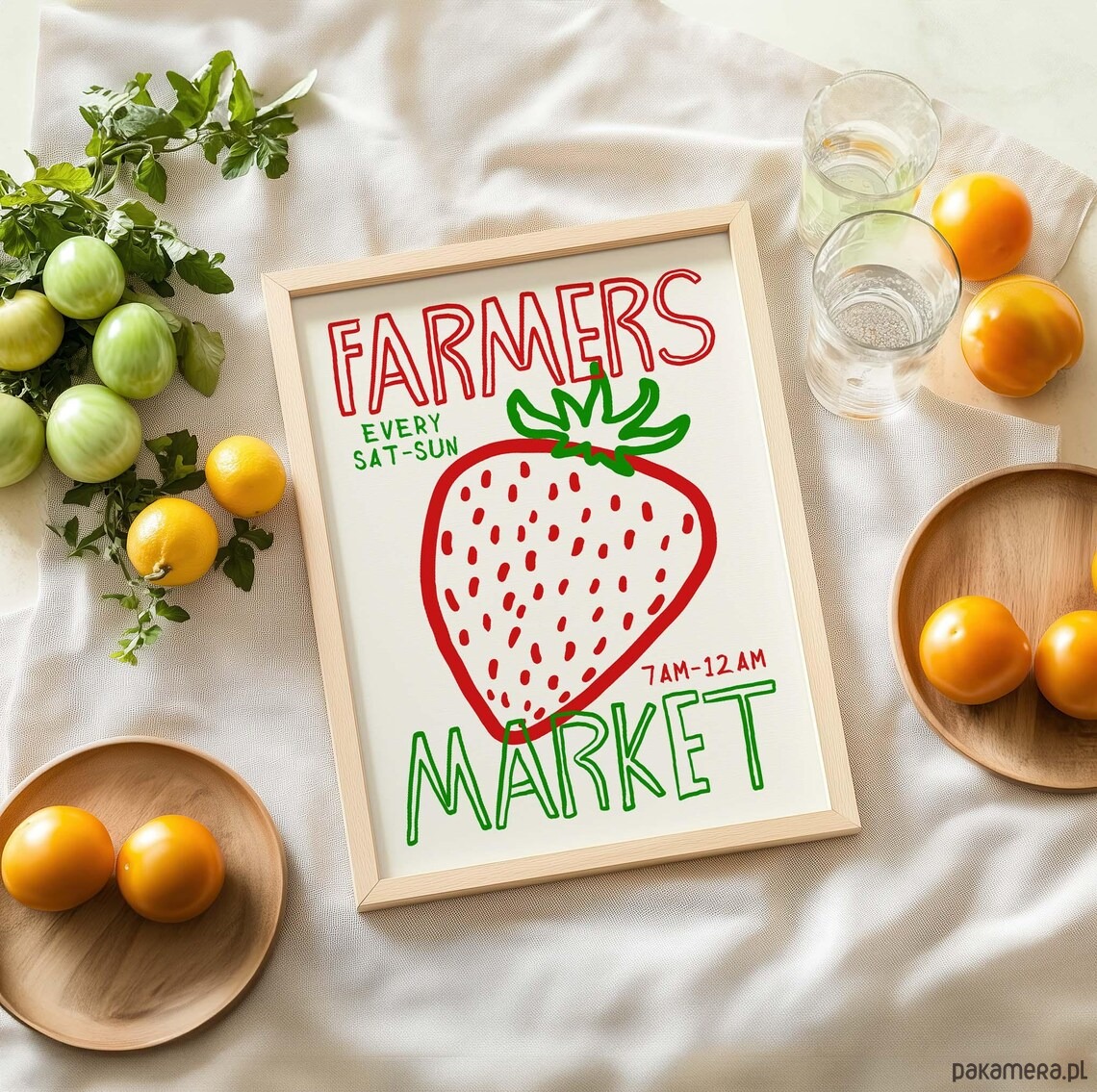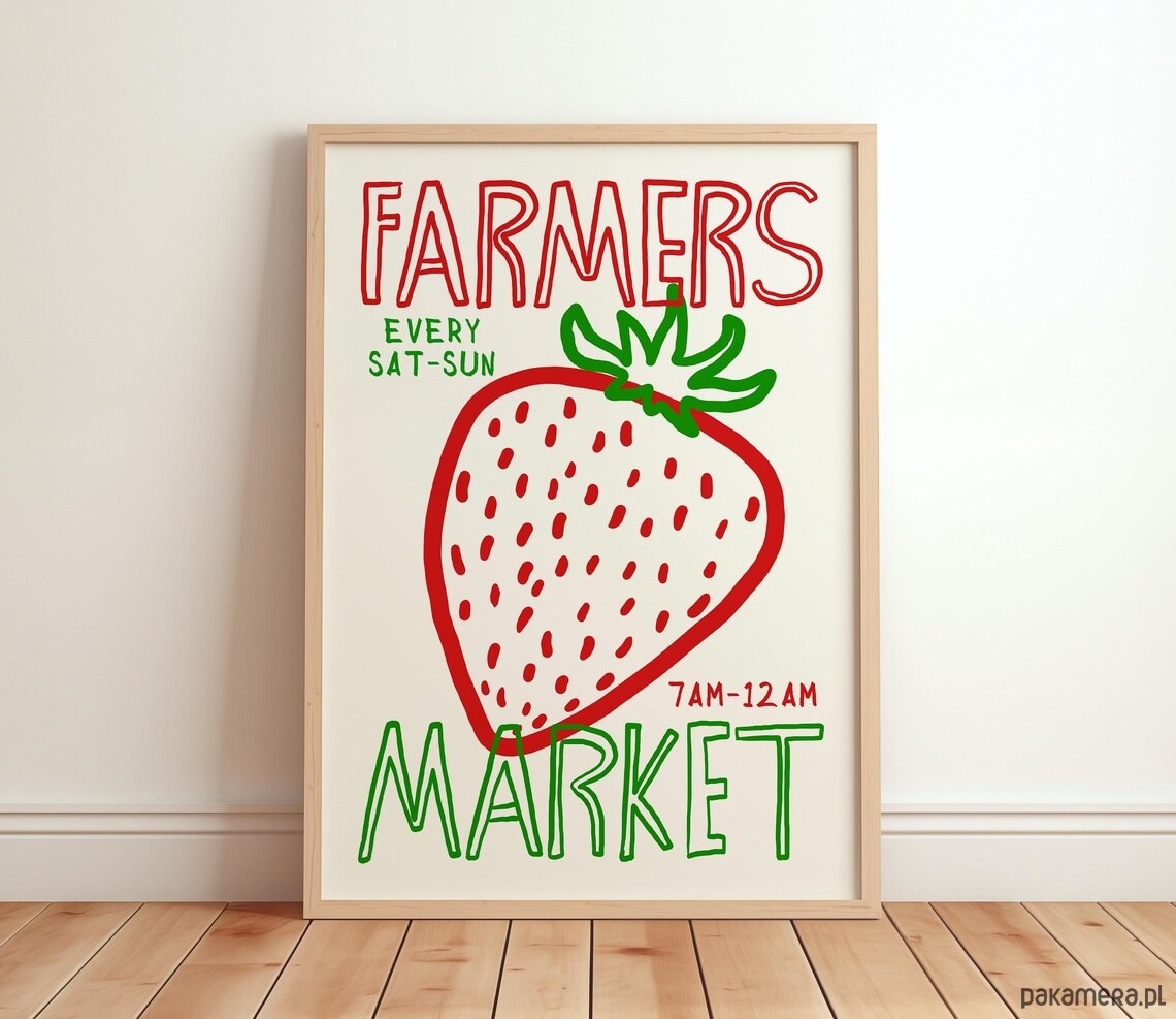 Grafika z truskawką i napisem FARMERS MARKET