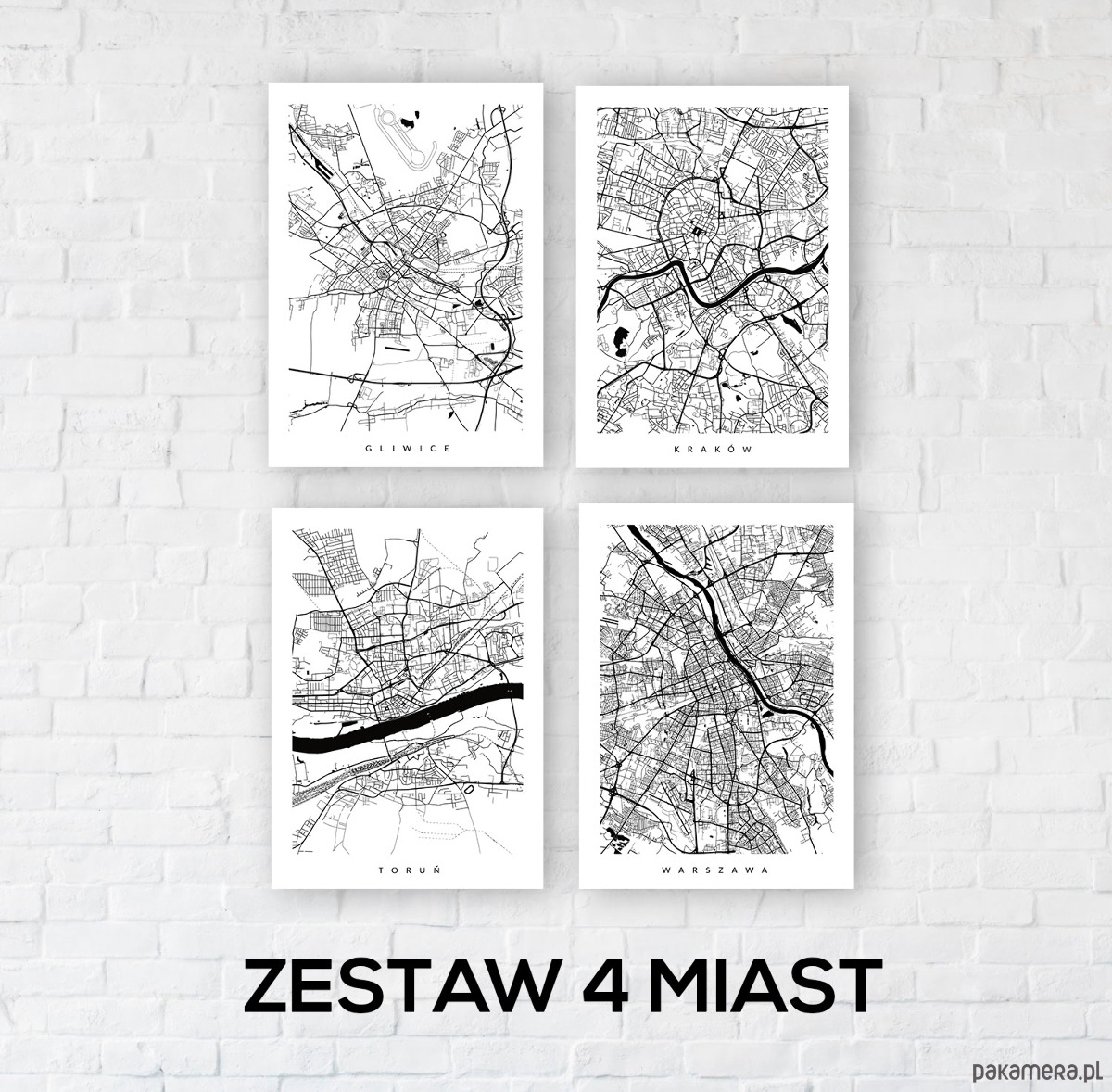 Kupując ten zestaw map, otrzymasz 4 plakaty w wybranym przez siebie rozmiarze, w korzystnej cenie. Przy zakupie w "uwagach do zamówienia" podaj informacje jakie miasta mamy dla Ciebie przygotować oraz w jakim kolorze. Przed wydrukiem otrzymasz wizualizację zestawu. Wzornik kolorystyczny map znajduje się w ofercie.