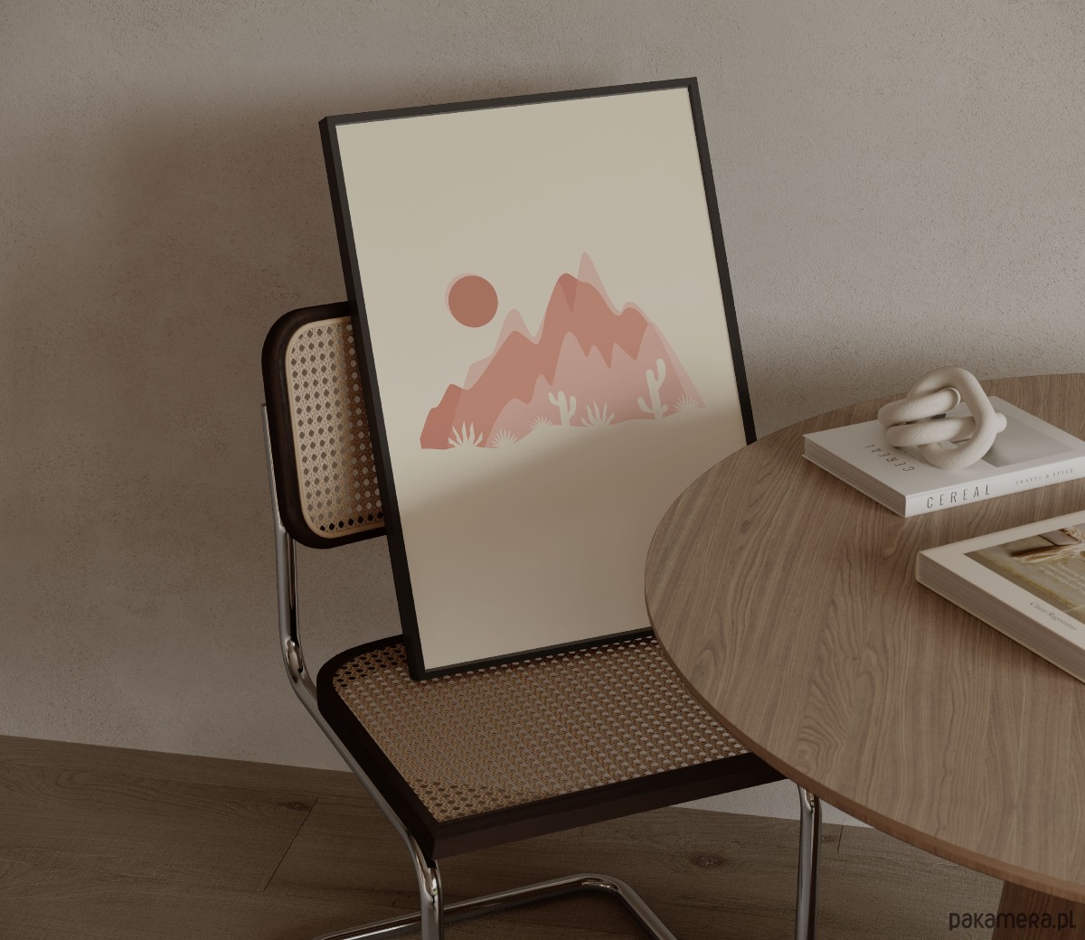Plakat wprowadza do wnętrza poczucie równowagi i naturalnego ciepła. Subtelna ilustracja nie dominuje przestrzeni, dzięki czemu łatwo dopasować ją do różnych stylów aranżacyjnych- od nowoczesnych i minimalistycznych, po skandynawskie, boho czy modern organic.