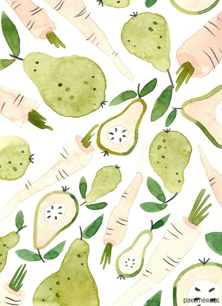 Kartka “Gruszka i pietruszka” została namalowana w wyjątkowy sposób, dzięki czemu można dać jej drugie życie. Dwukrotnie większy format niż pocztówki klasyczne oraz ilustracyjna forma frontu pozwala na jej estetyczne oprawienie w ramkę, by mogła zdobić przestrzeń osoby obdarowanej i przypominać o miłych chwilach i bliskich osobach, które wręczyły tę kartkę.