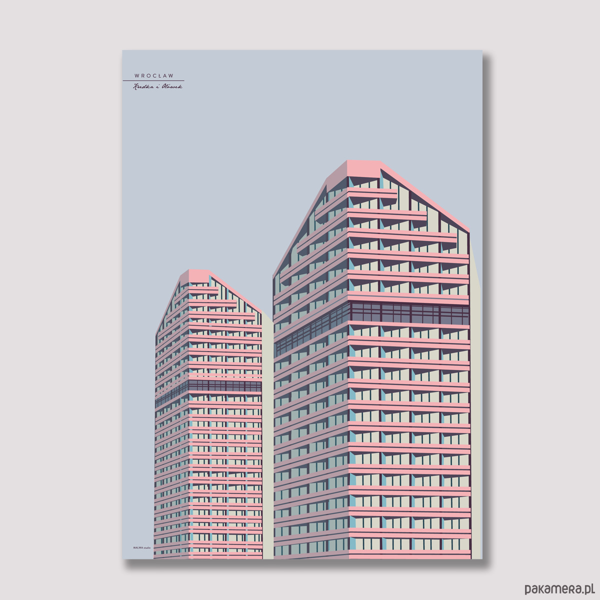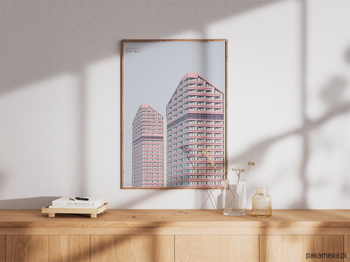 Plakat z serii wrocławskiej, przedstawiający wrocławskie akademiki Kredkę i Ołówek.