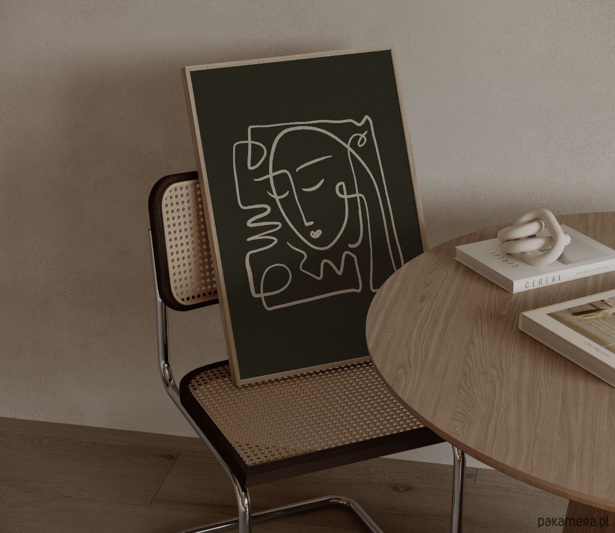 Plakat sprawdzi się jako dekoracja ścienna do salonu, sypialni, biura lub gabinetu. To uniwersalna propozycja dla osób ceniących minimalizm, sztukę liniową i spokojną estetykę, która łatwo wpisuje się w różne style wnętrz- od nowoczesnych, przez skandynawskie, po mid-century.