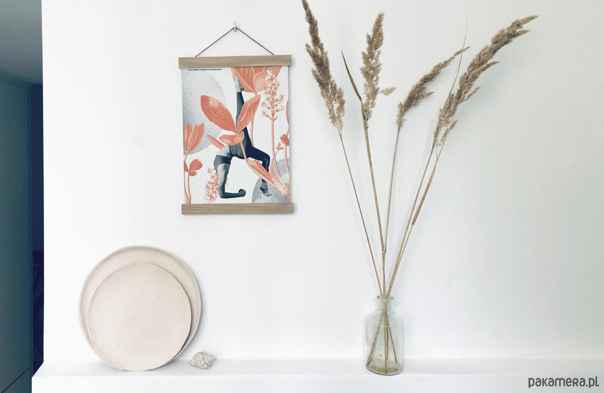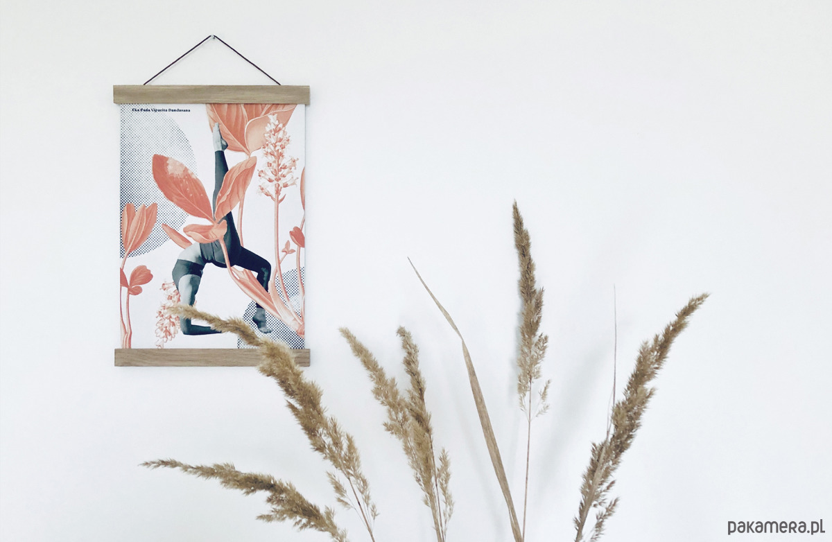 Plakat przedstawiający pozycję jogi Eka Pada Viparita Dandasana. Ilustracja pochodzi z kalendarza "Today calendar 2021"