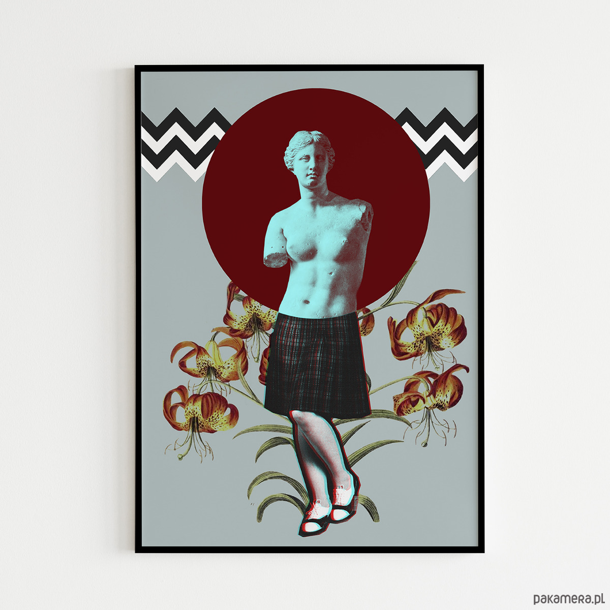 Ilustracja wykonana w technice kolażu. Wydruk na matowym papierze 300g.