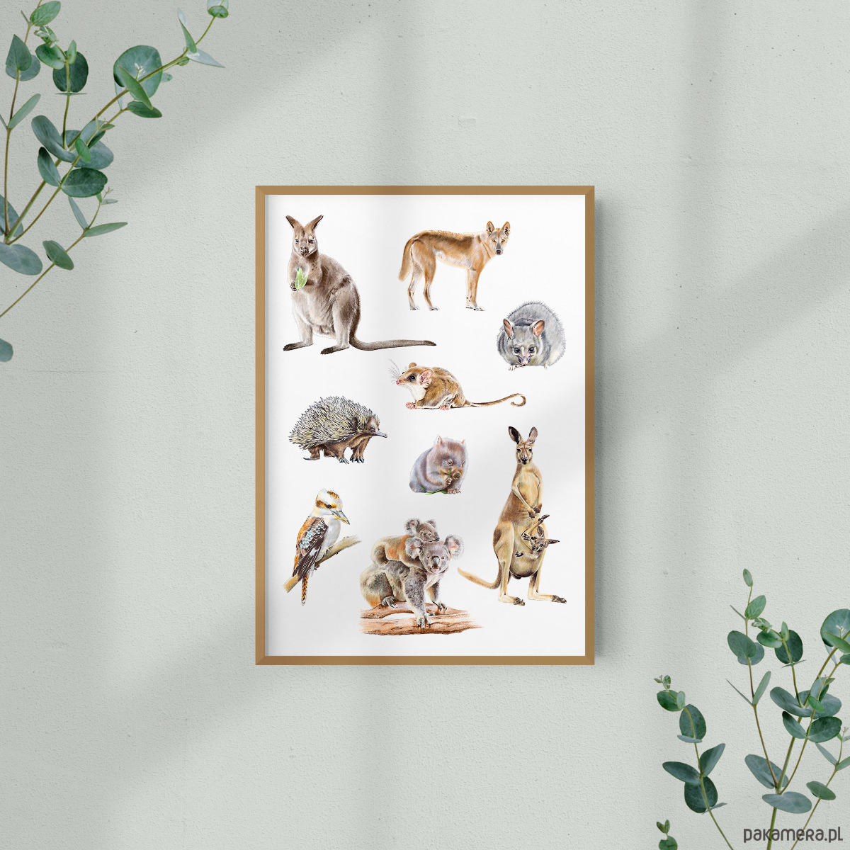 Zwierzęta australijskie - wydruk autorskiej ilustracji wykonanej techniką akwarelową. Idealny prezent dla miłośnika zwierząt lub do dekoracji pokoju dziecięcego.