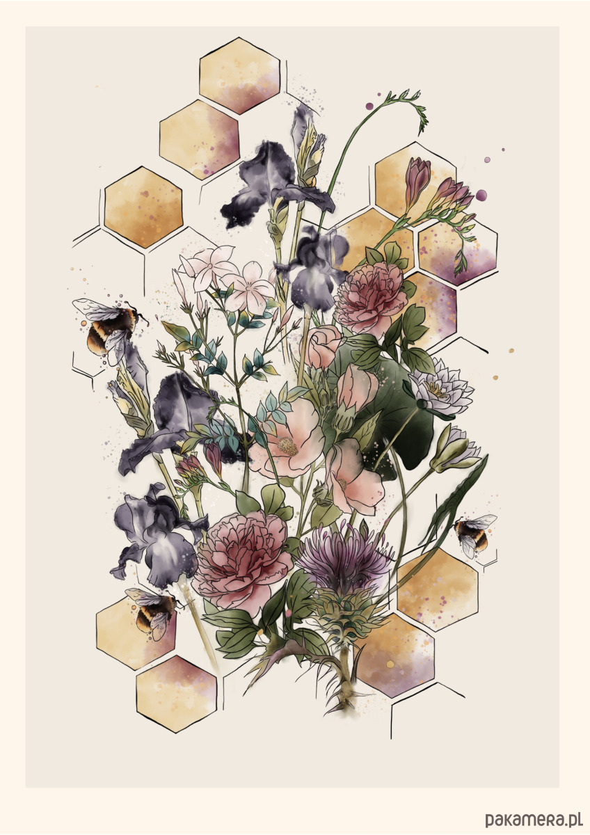 Pszczoły w bukiecie plakat