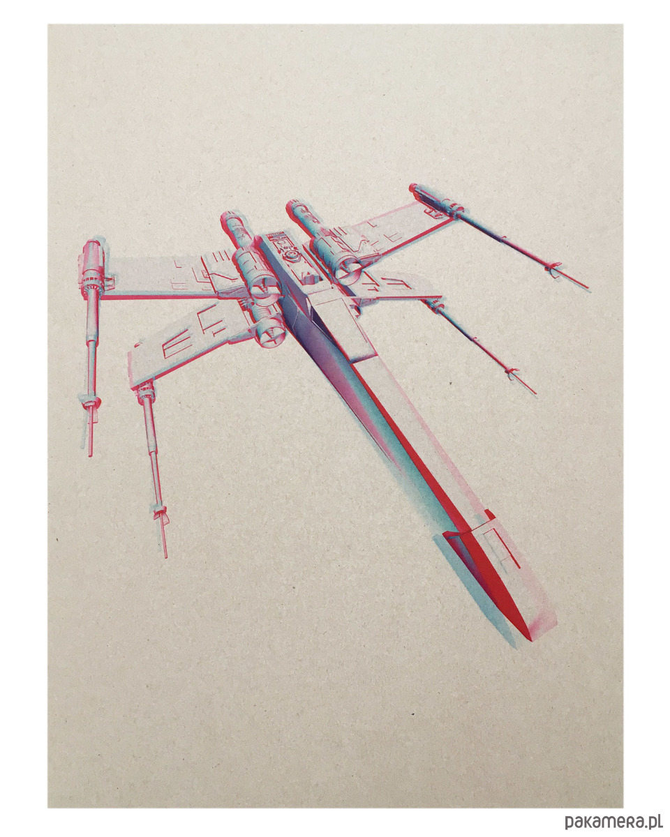 Trudno powiedzieć, czy akurat tym T-65 X-wing leci Luke, ale jest to całkiem prawdopodobne :). Ikoniczny myśliwiec Sojuszu Rebeliantów został tu przedstawiony w anaglifowej estetyce (takie oldskulowe 3D). Niech moc będzie z Wami!