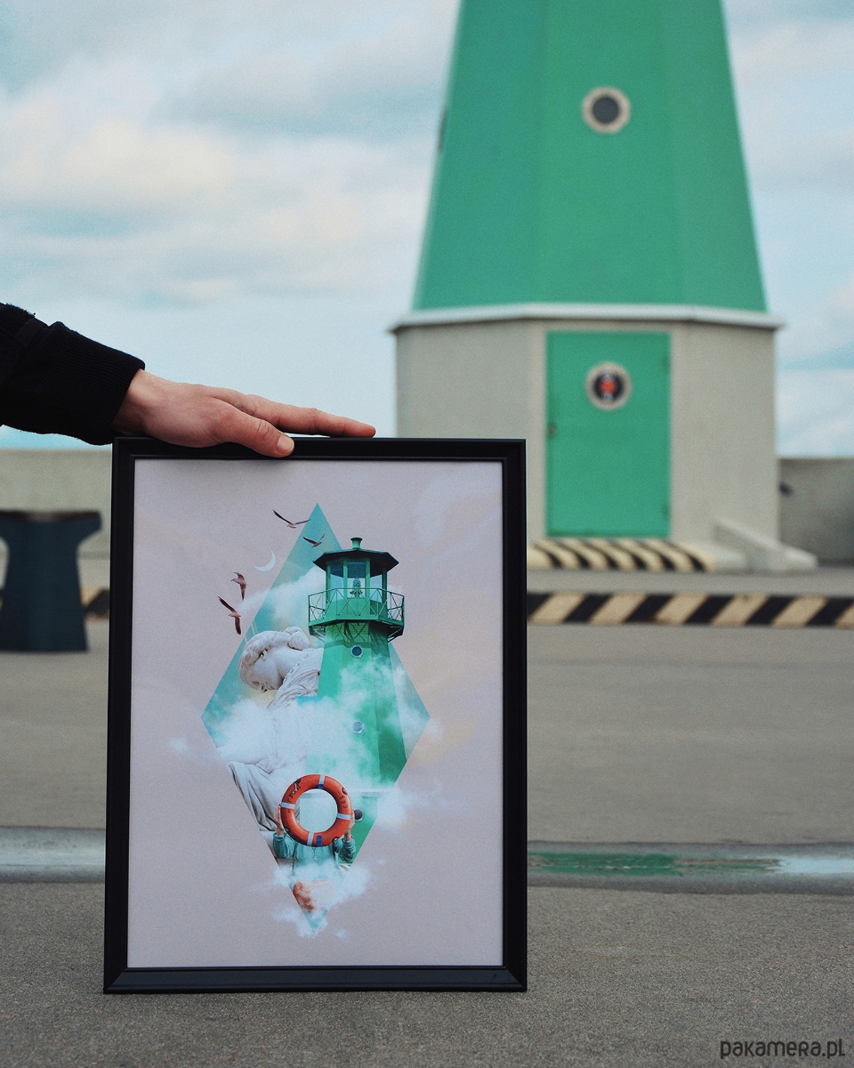Plakat z gdańską zieloną latarnią.