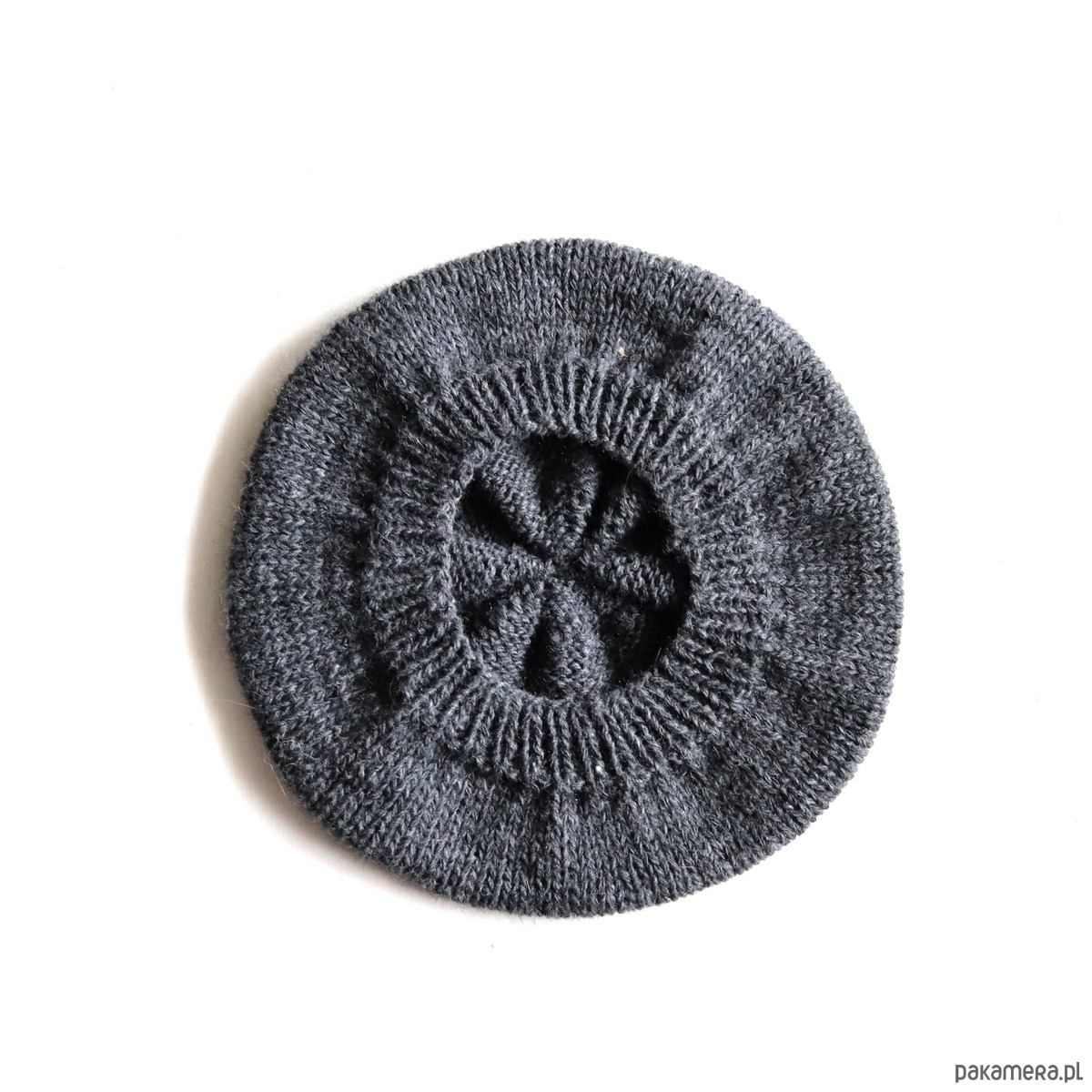 Grafit - beret w stylu francuskim – ręcznie robiony na drutach