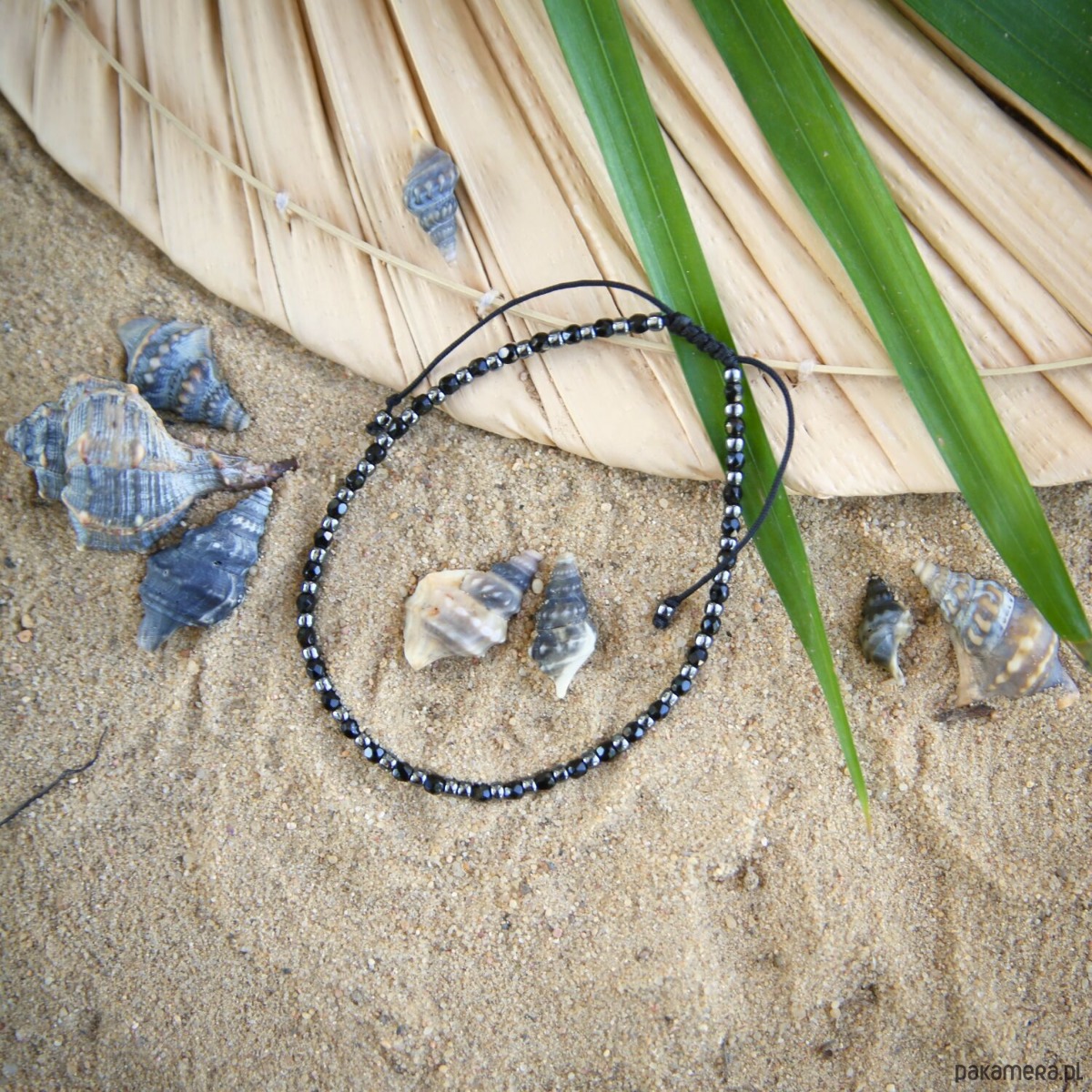 Bazą bransoletki jest bardzo mocny sznurek z wiązaniem, które umożliwia regulowanie obwodu.