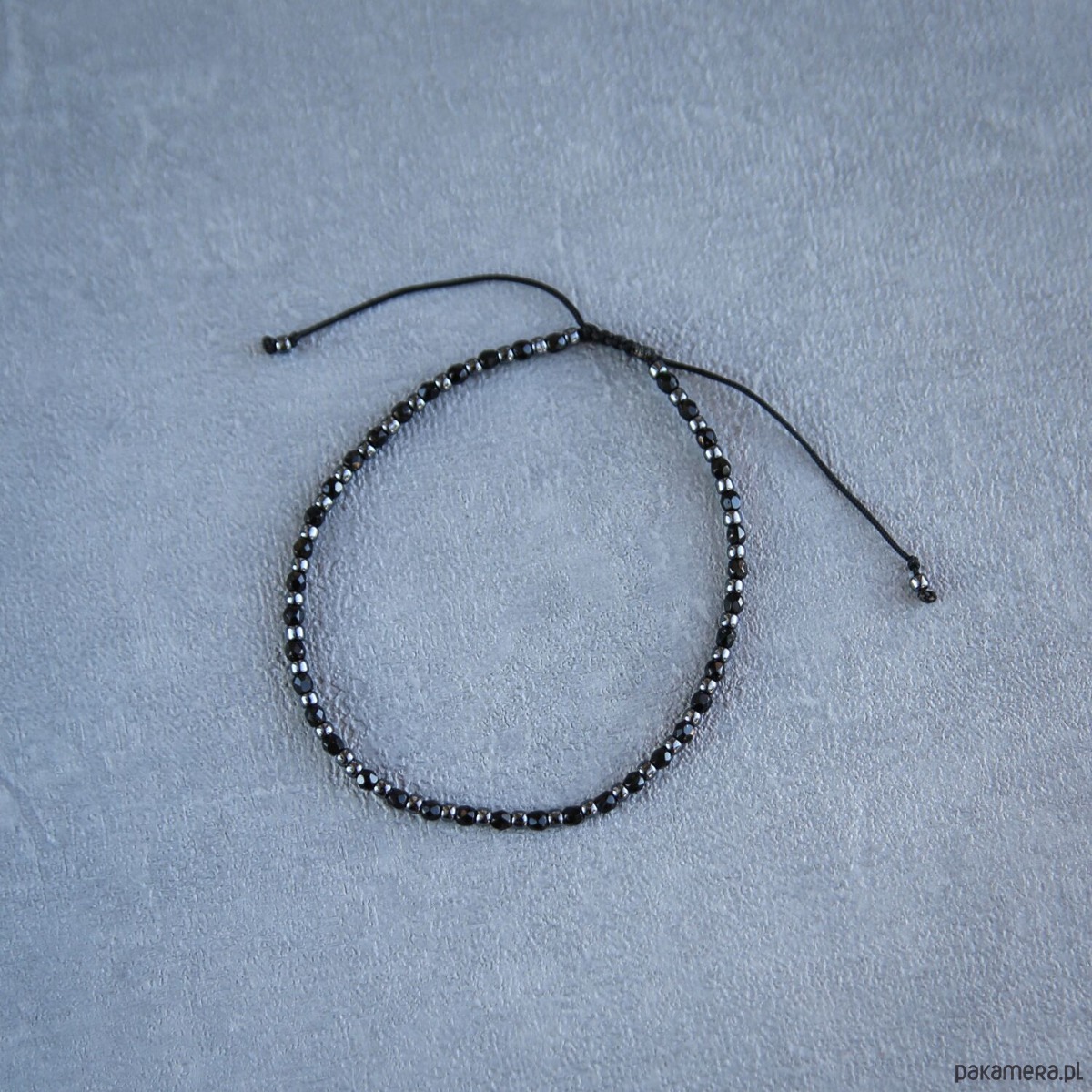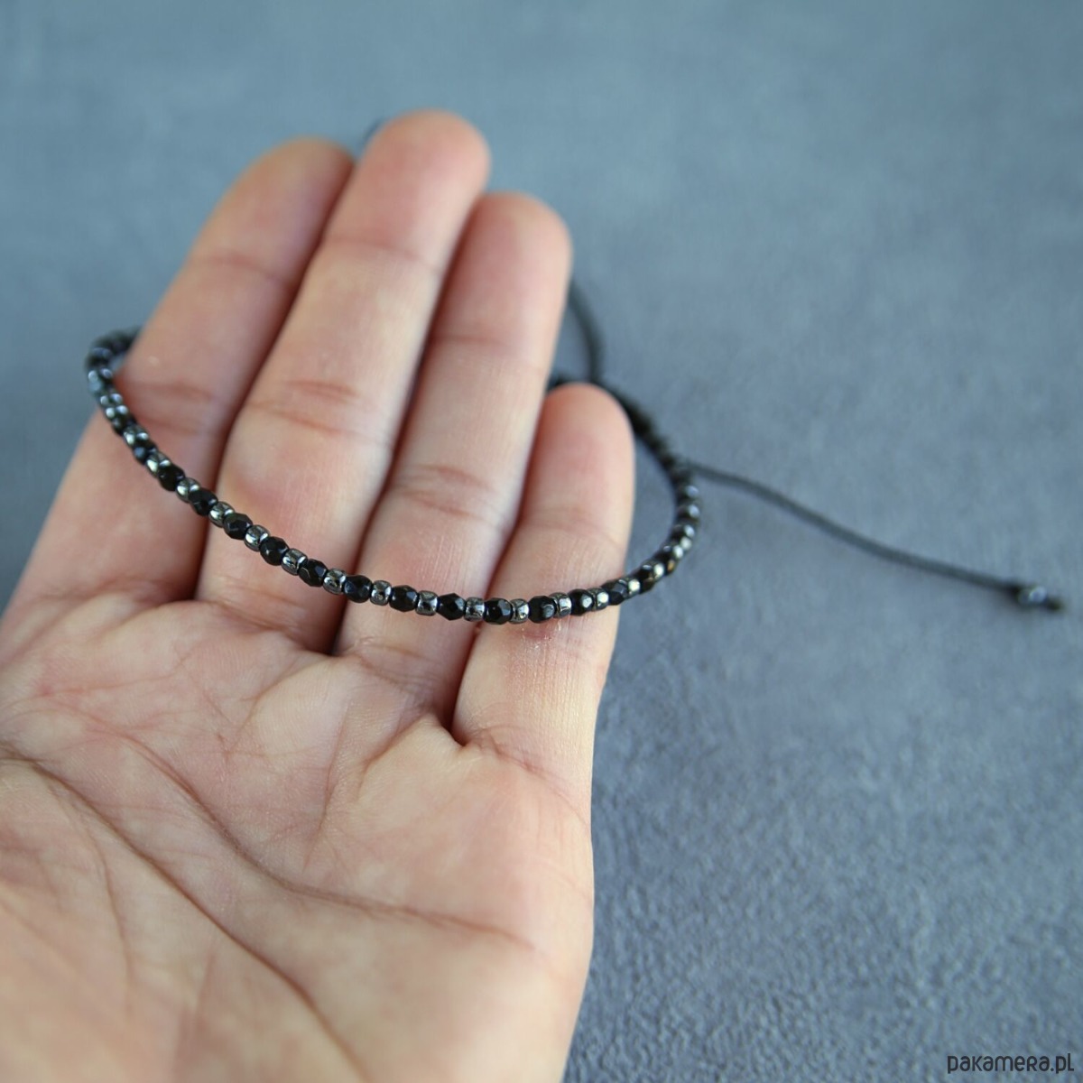 Bransoletka do noszenia na nodze/kostce ze szklanych koralików - szlifowanych czarnych oraz mniejszych w kolorze grafitowym/hematytowym.