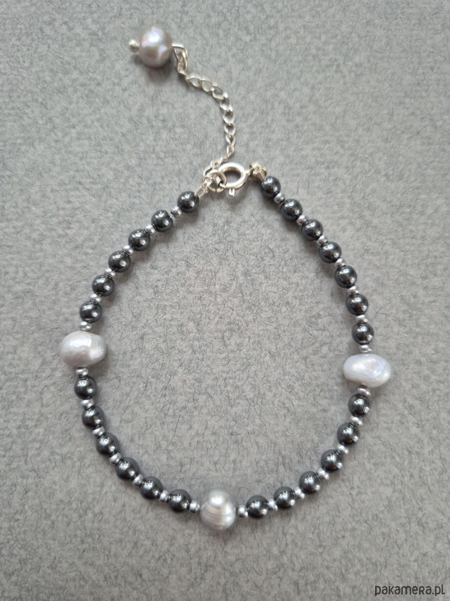 – materiały: naturalne perły, grafitowe hematyty, srebro próby 925