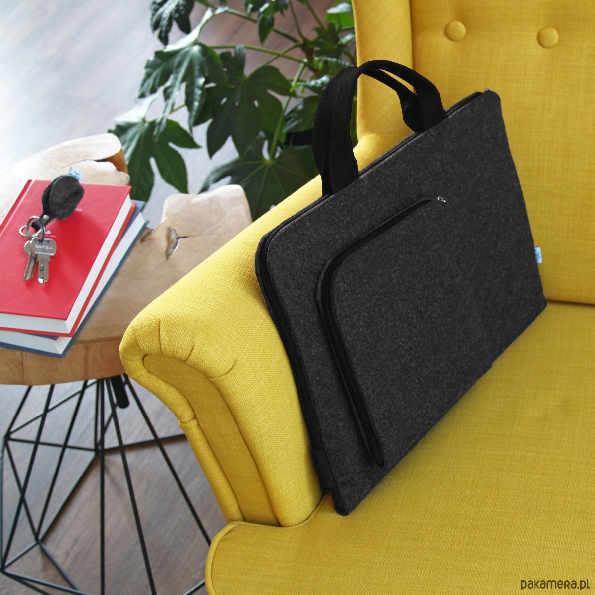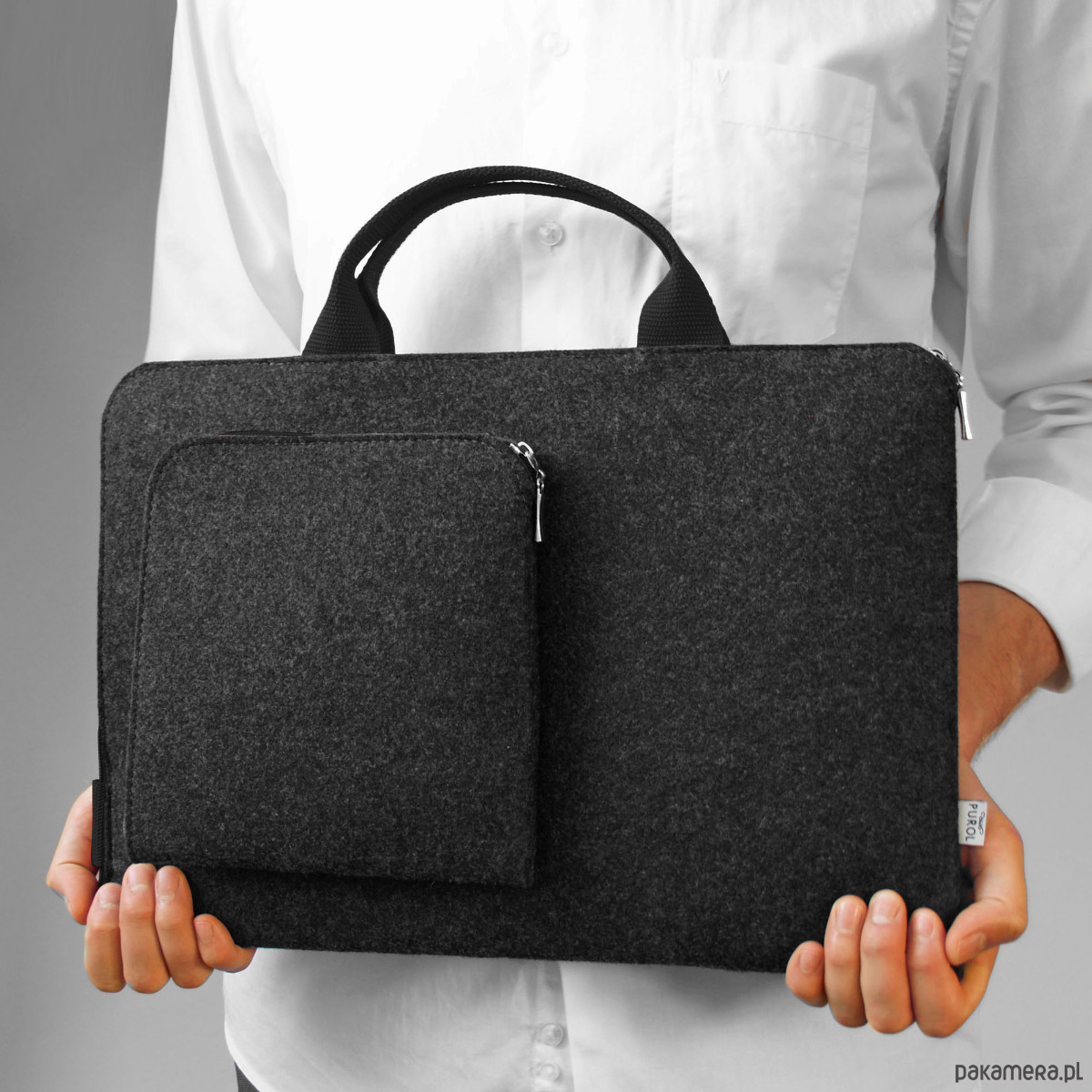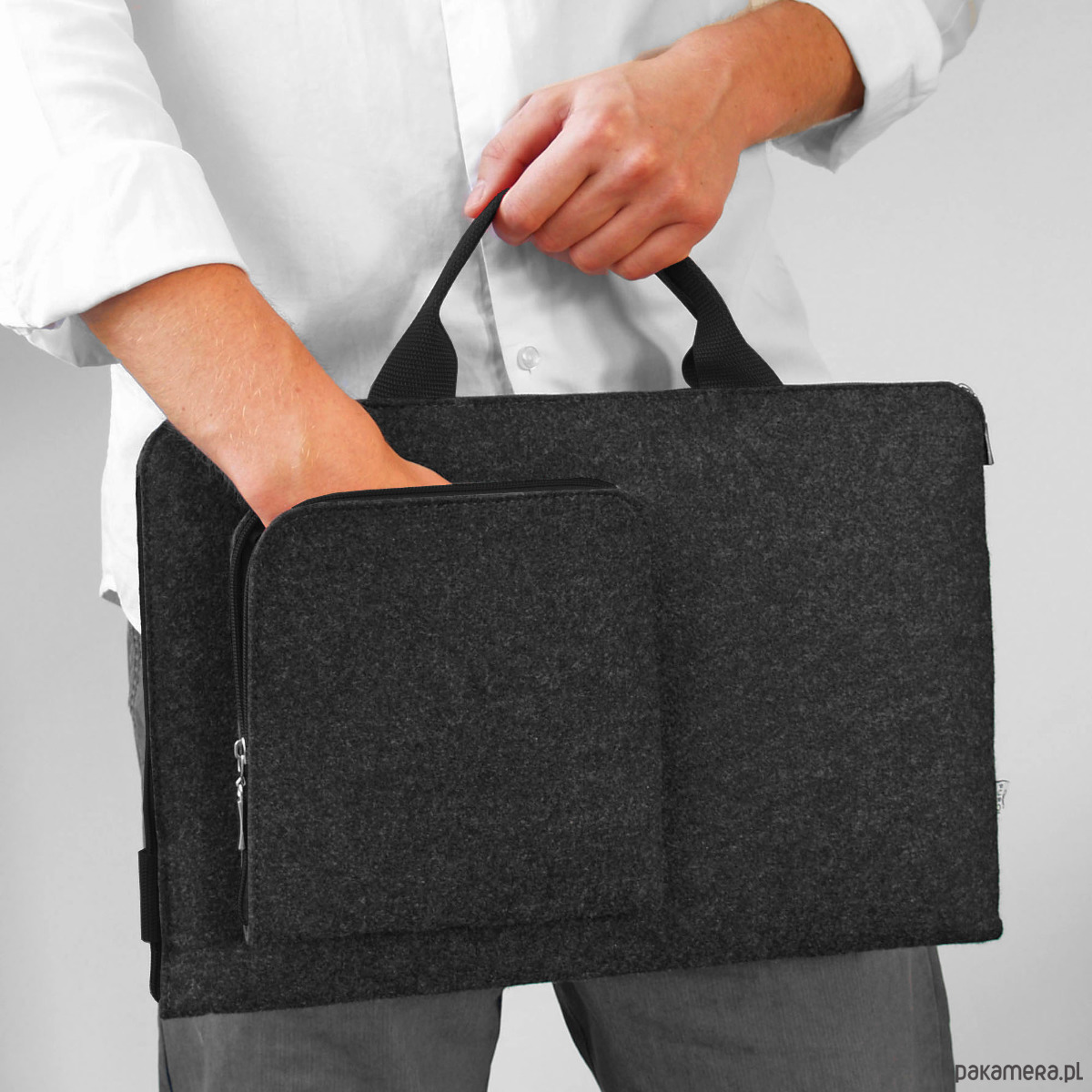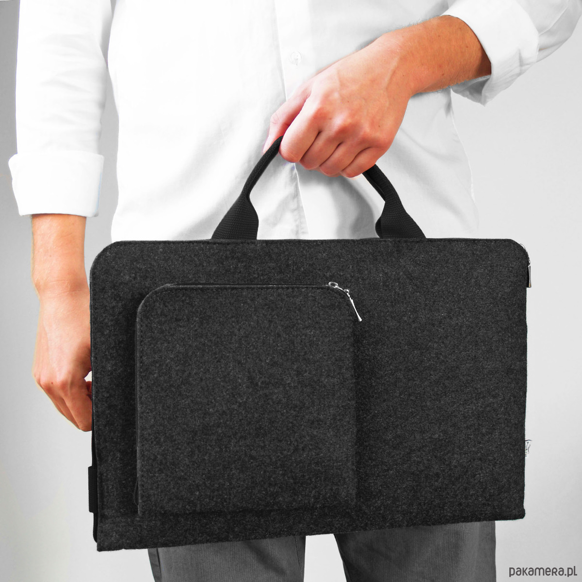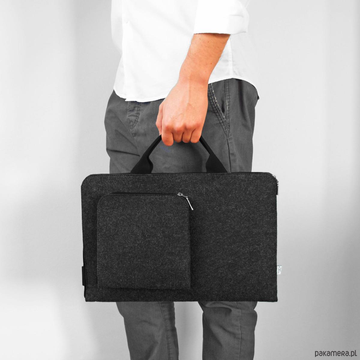 Grafitowe Etui Na Laptopa Z Filcu Czarna Rączka