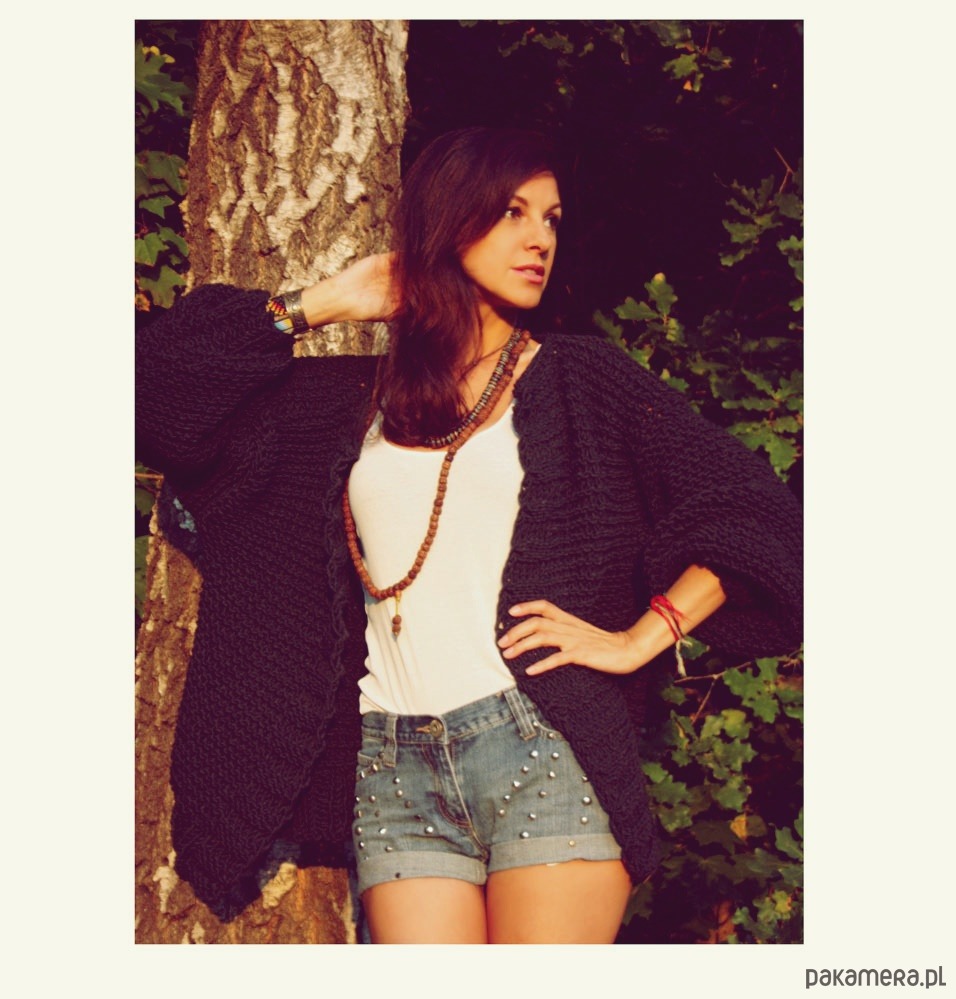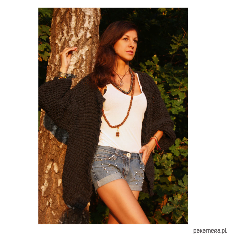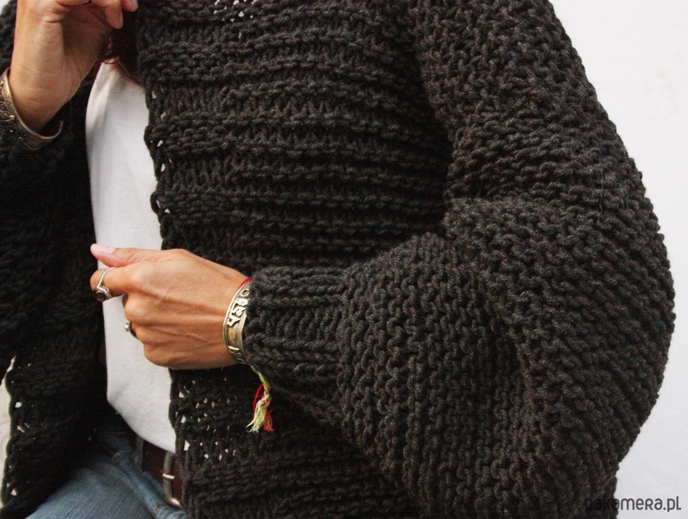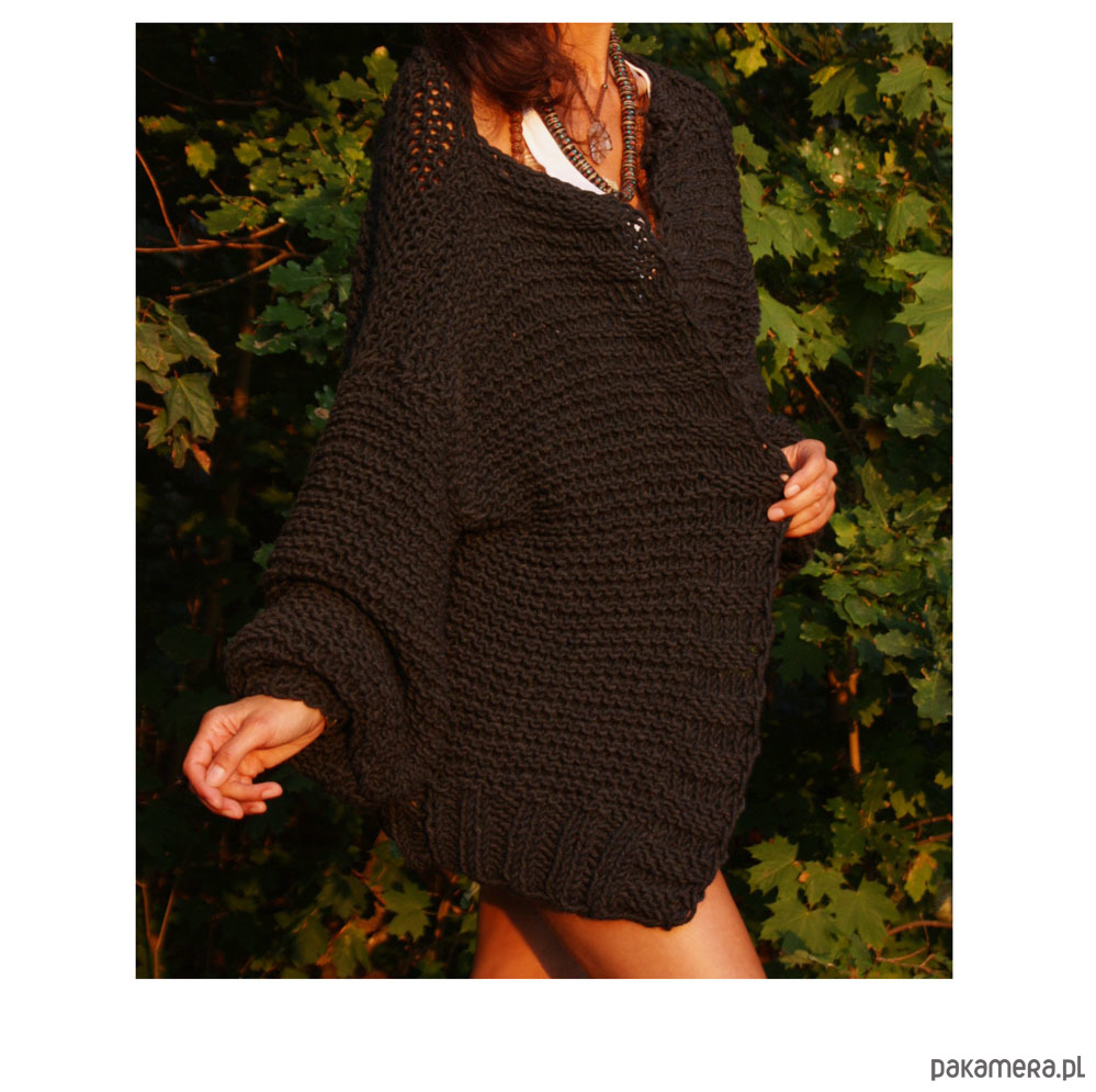 Ręcznie wykonany sweter w kolorze grafitowym.