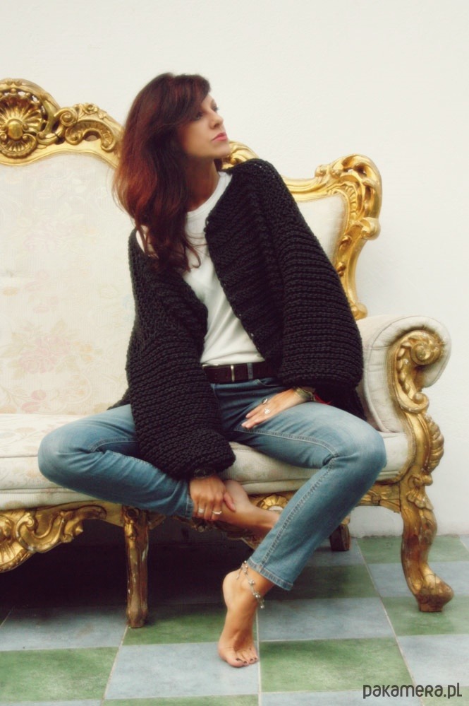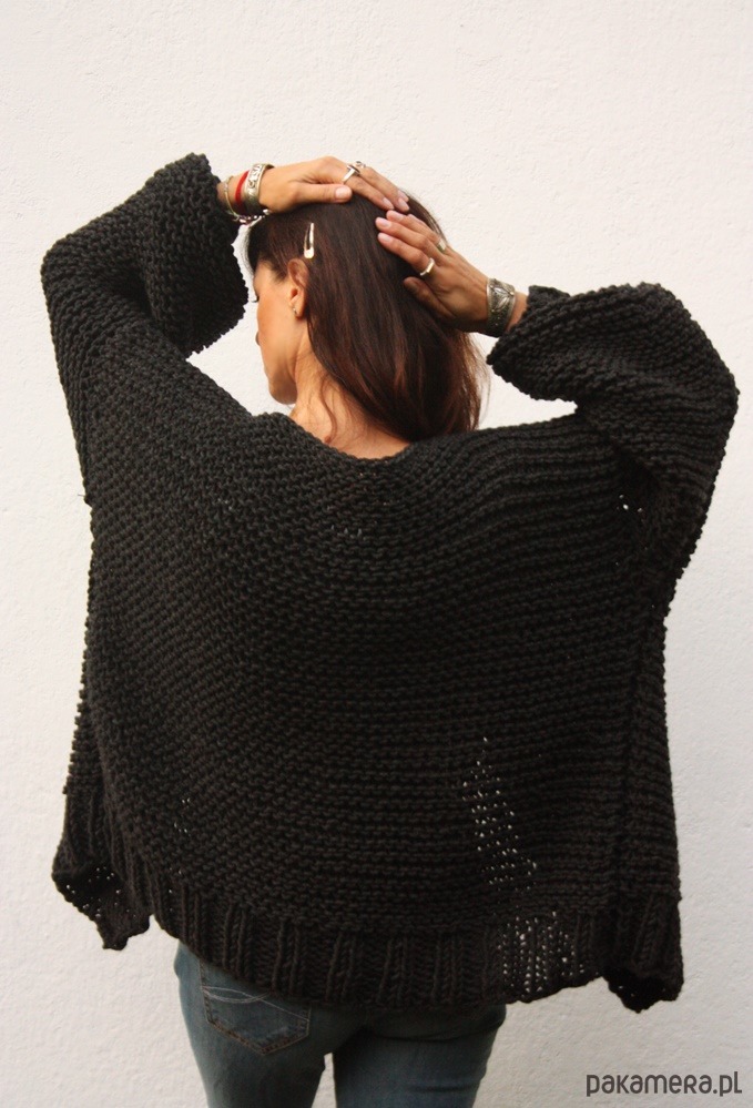 Ręcznie wykonany sweter w kolorze grafitowym.