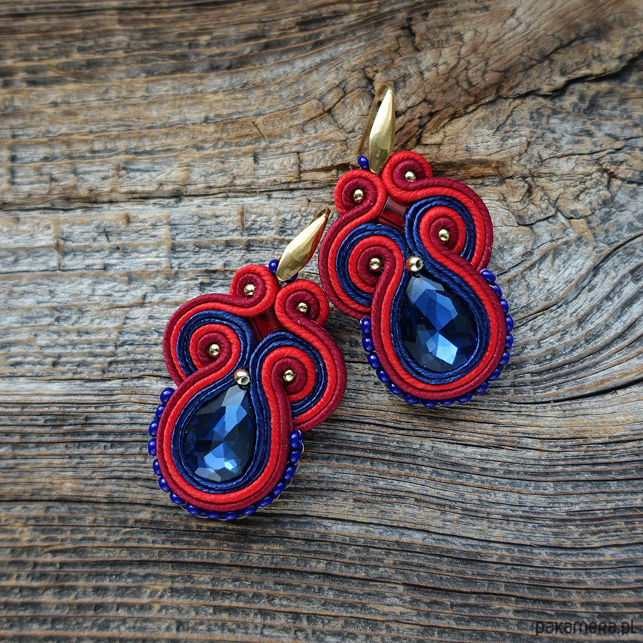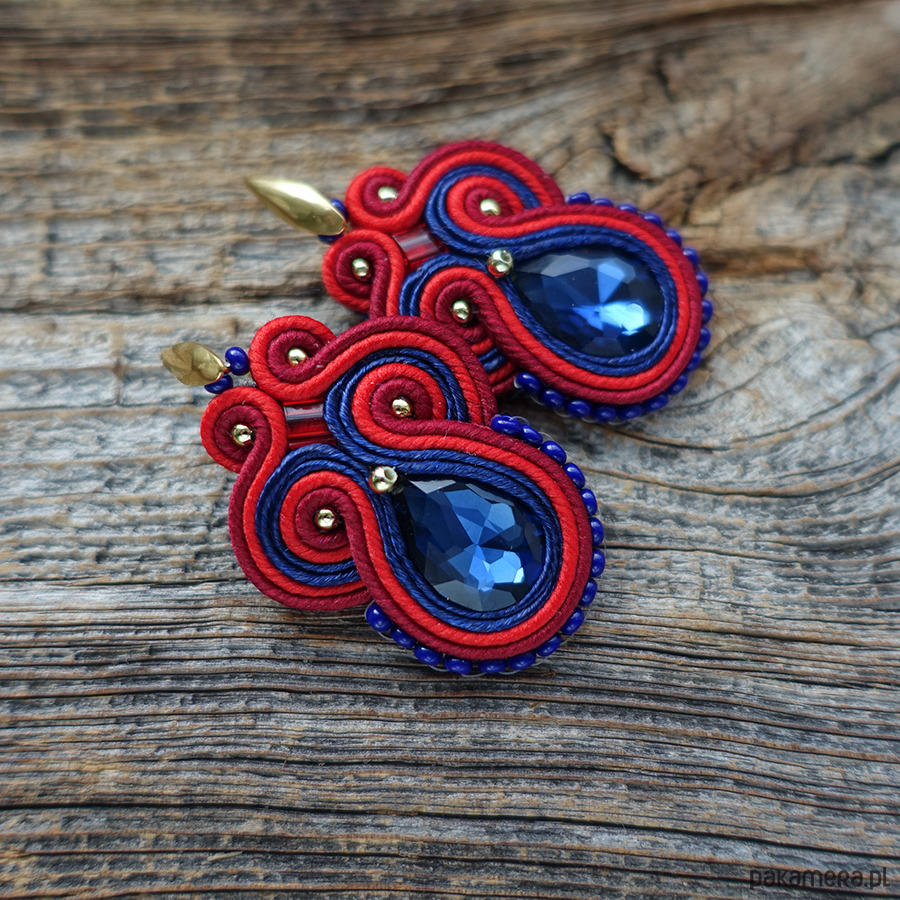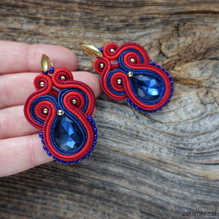 Kolczyki soutache – granat, bordo i złoto ⚜️