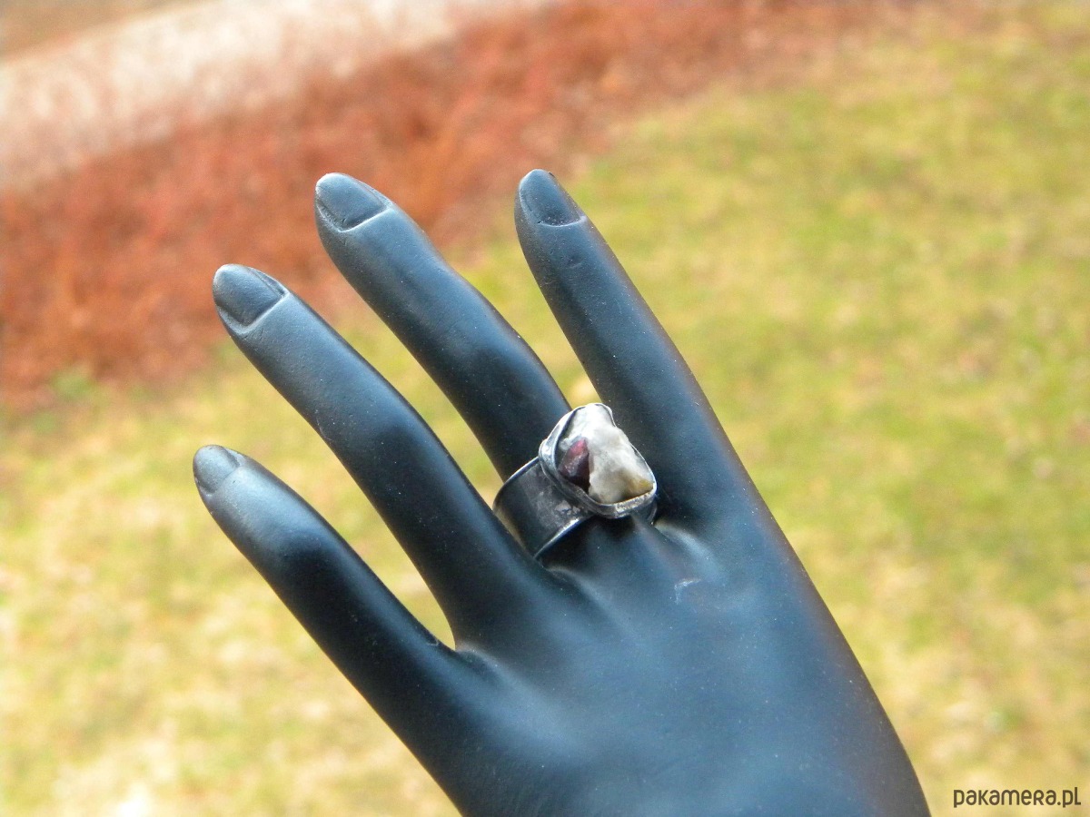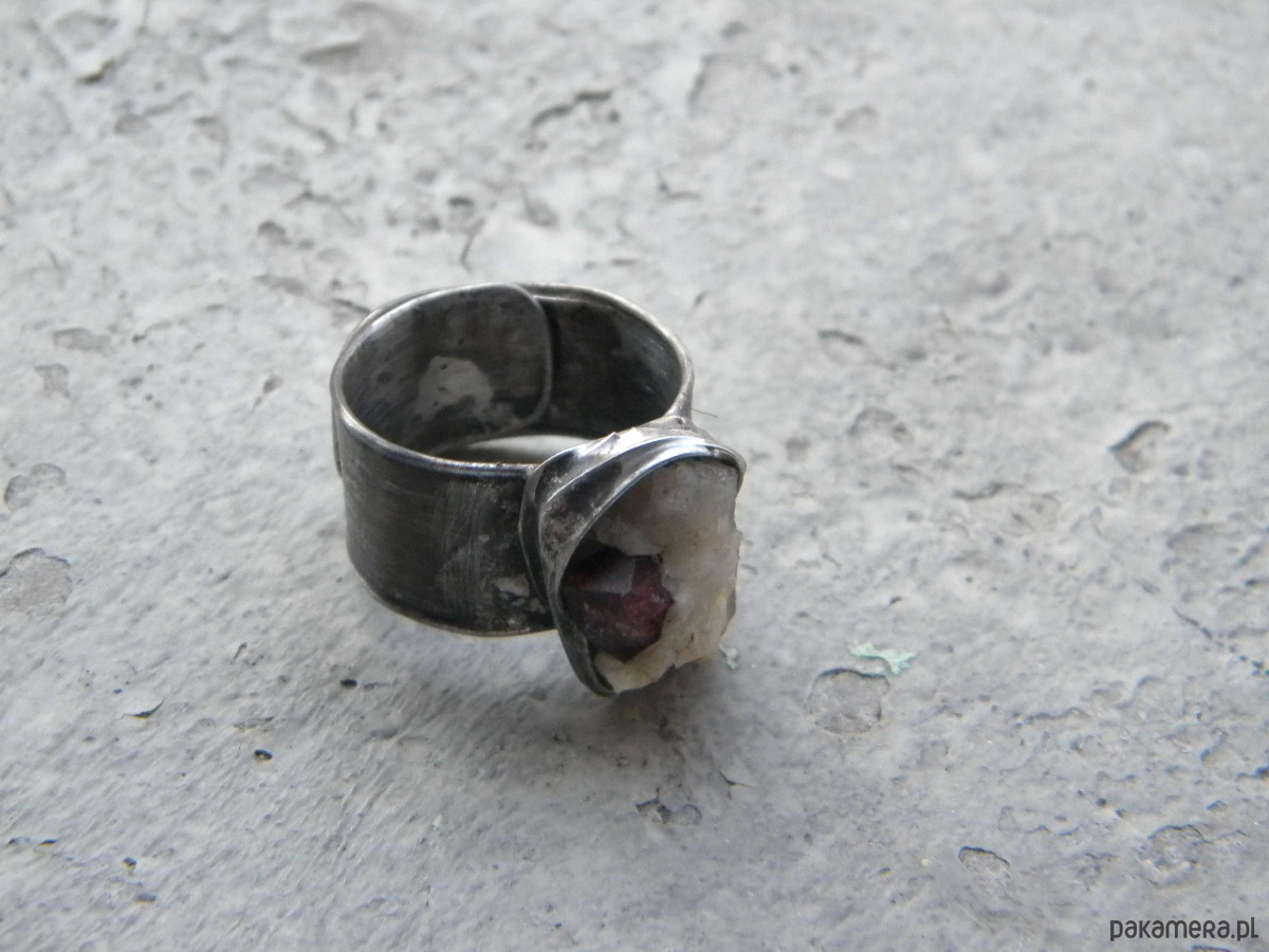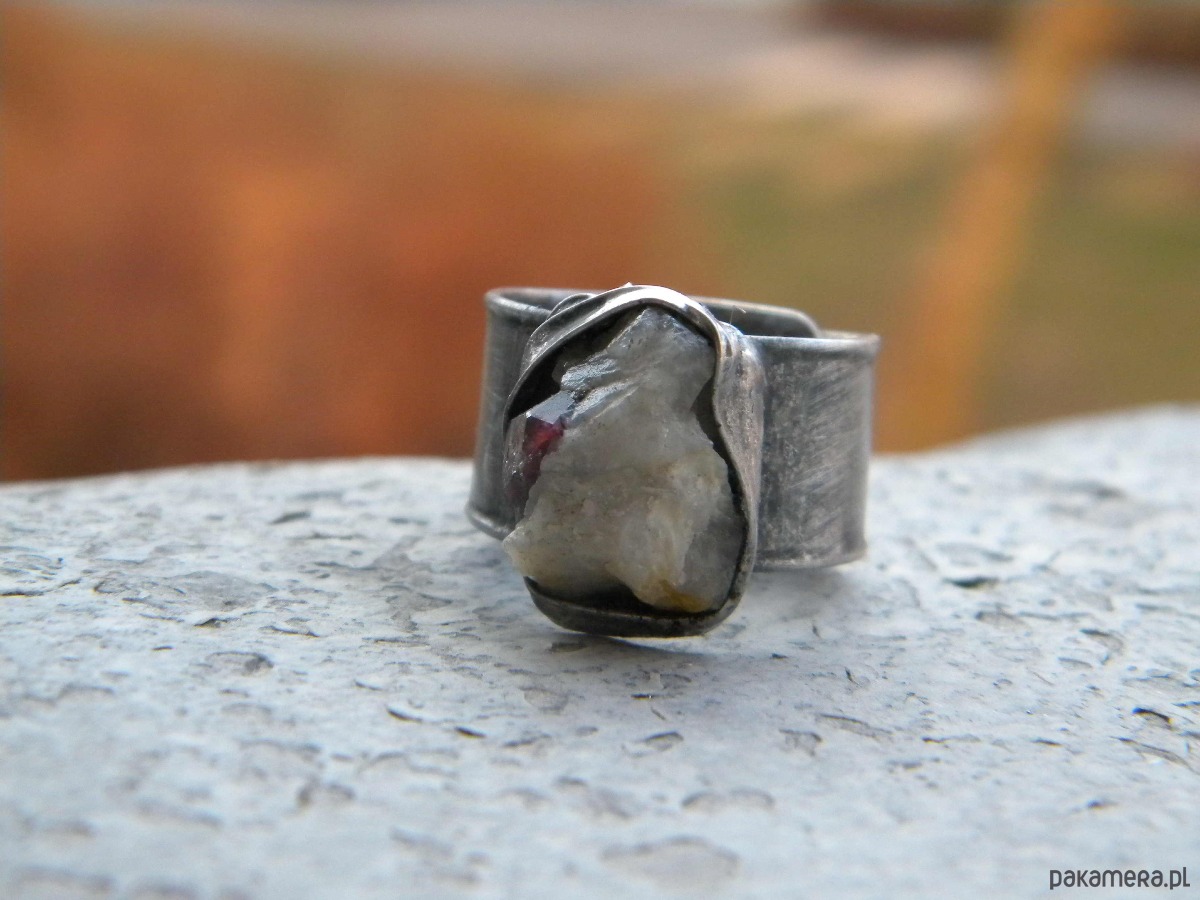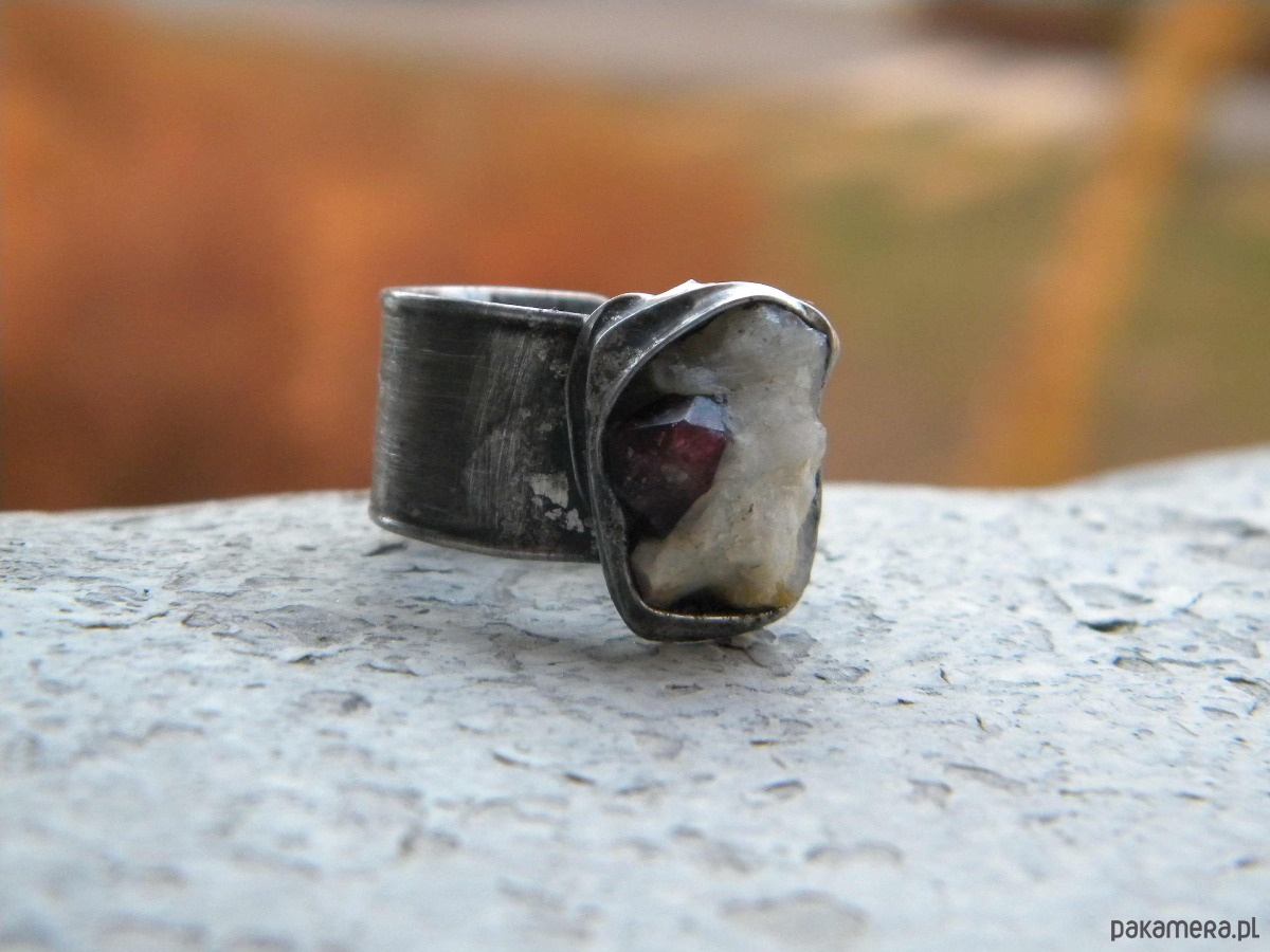 surowy kryształ granatu w kwarcycie w oprawie z ocynowanej miedzi