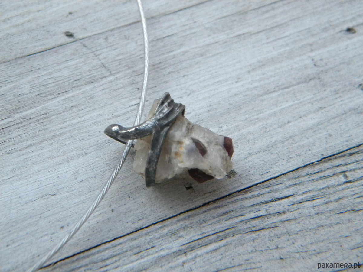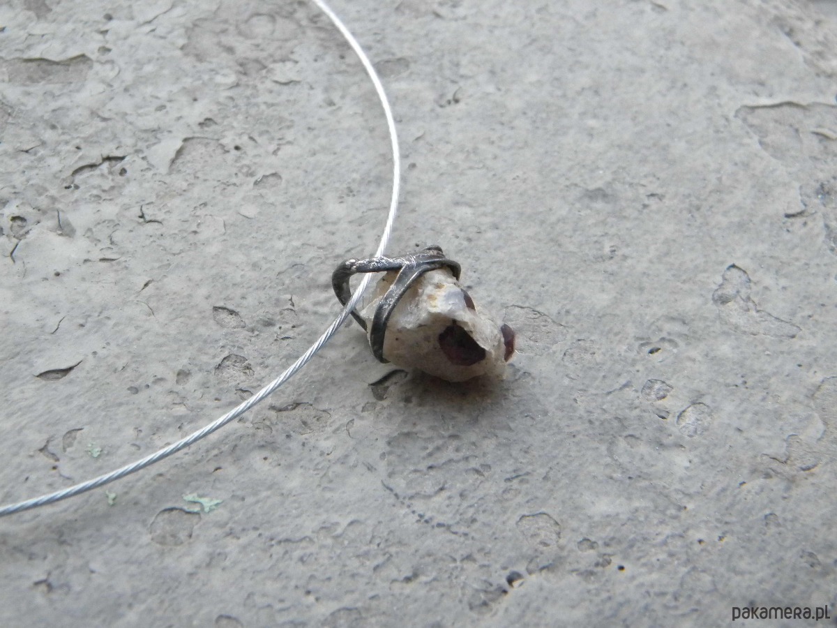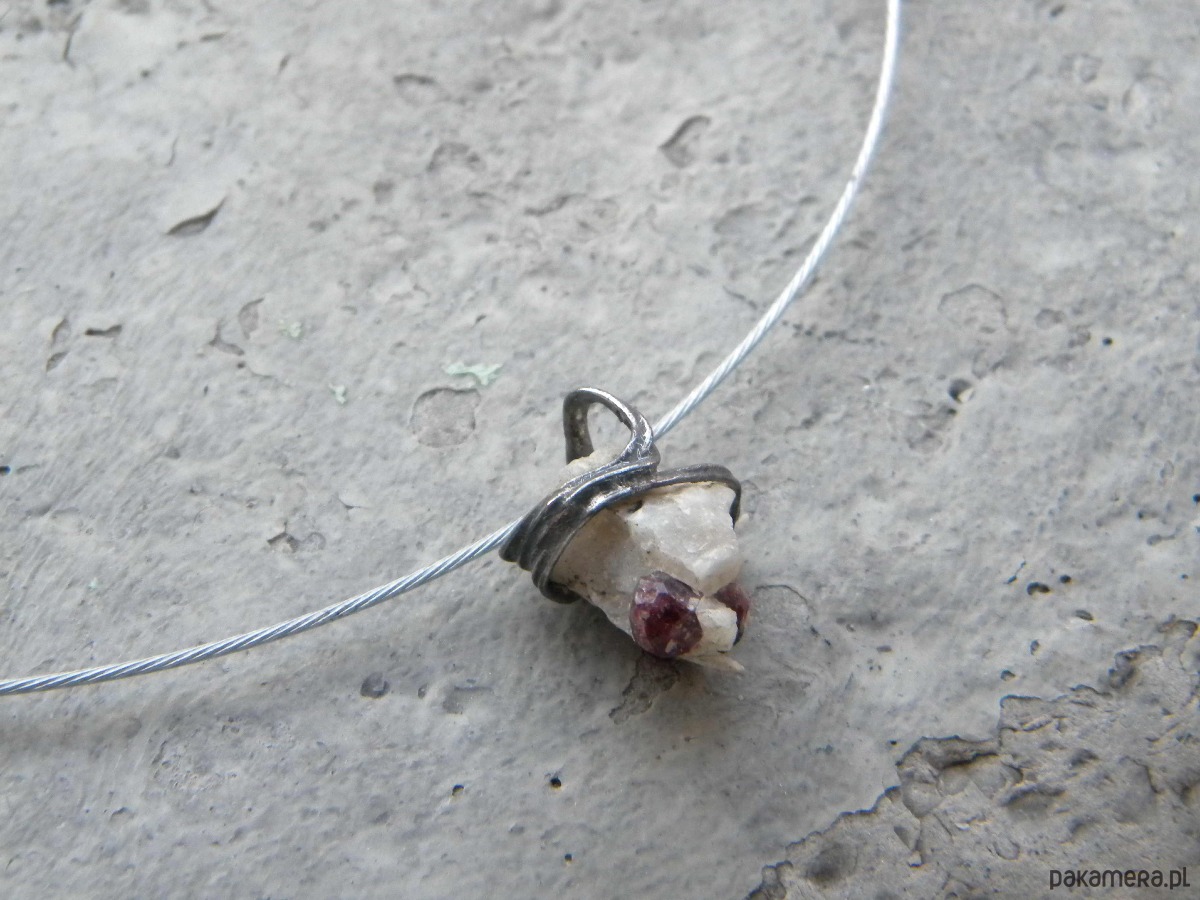 Granat w kwarcycie - naszyjnik - pojedynczy akcent