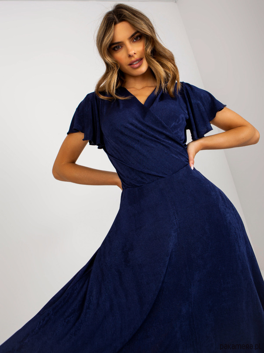 - 404-2 Błyszcząca długa sukienka z dekoltem - GRANATOWA z brokatemNUMOCO289,00 zł