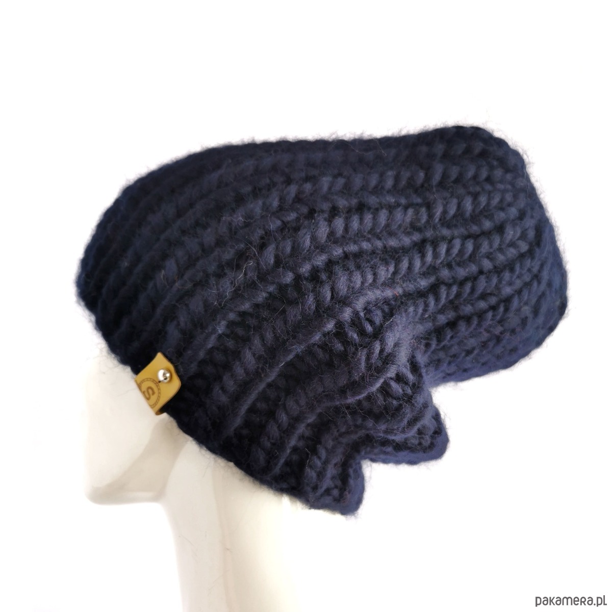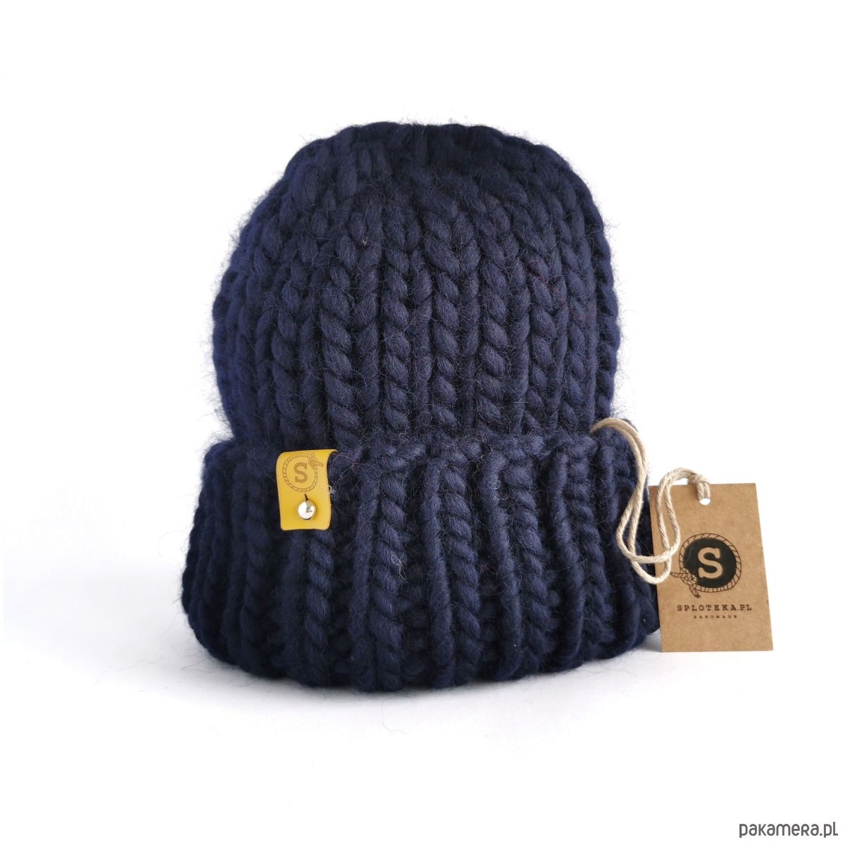 Granatowa czapka z wełny i alpaki wykonana ręcznie .