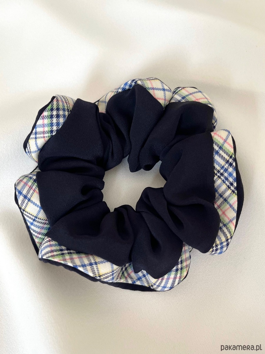 Granatowa jedwabna scrunchie Navy Blue Shine z ozdobną lamówką to subtelny dodatek, który pięknie przyozdobi Twoje włosy. Niezwykle wyjątkowa!