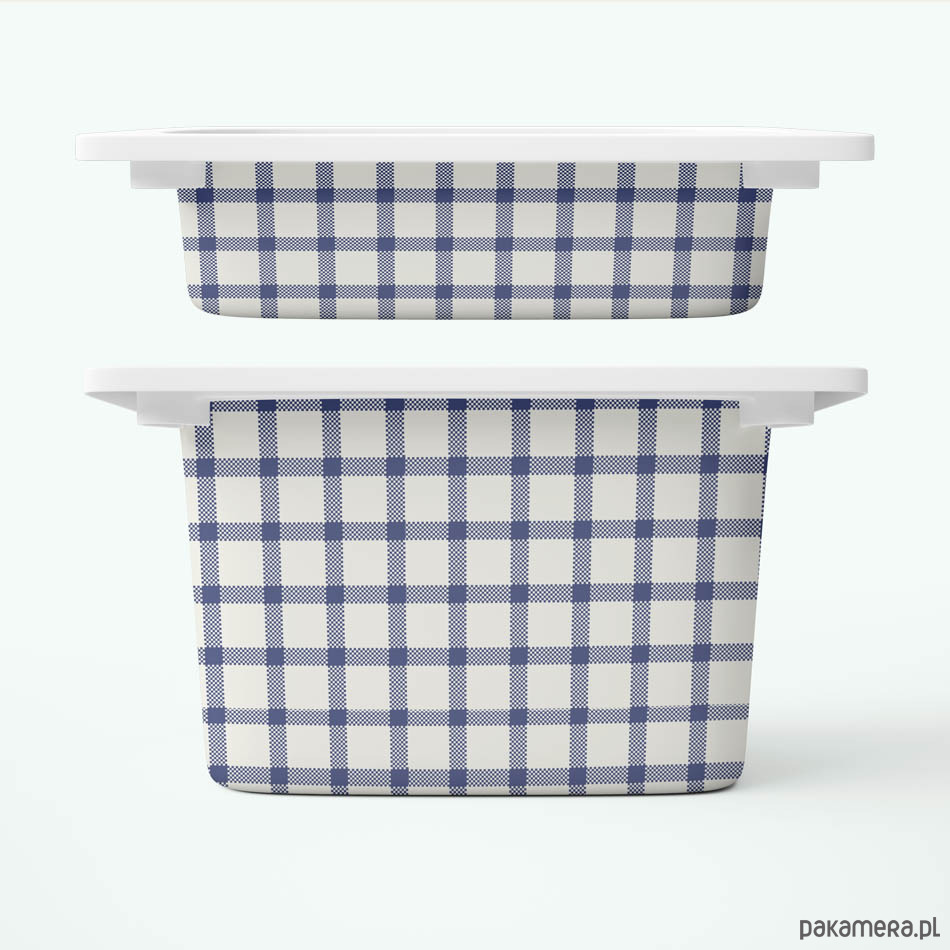 Granatowa kratka - naklejki na pojemniki na zabawki