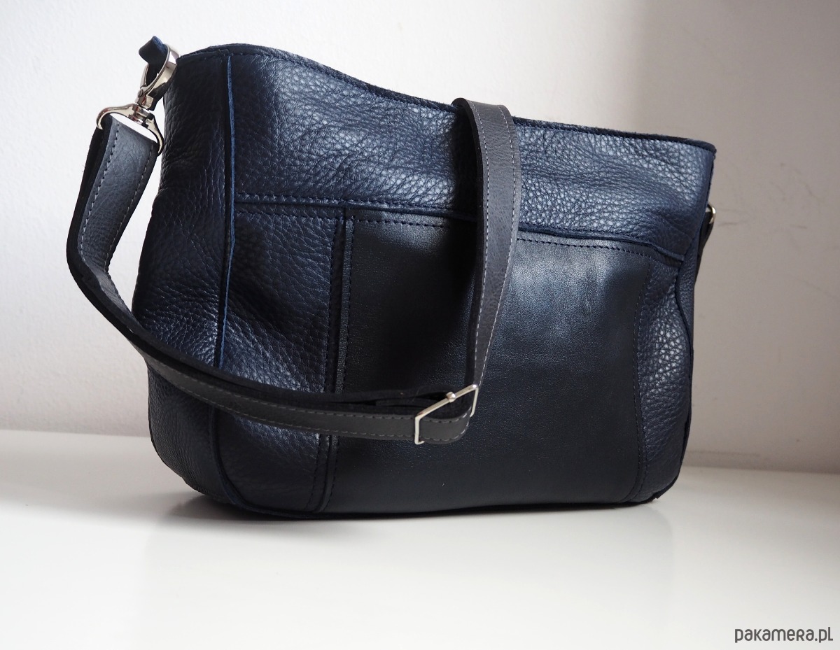 Skóra ma fajną grubość, jest miękka, ale nie jest bardzo wiotka. Torebka ładnie trzyma kształt.