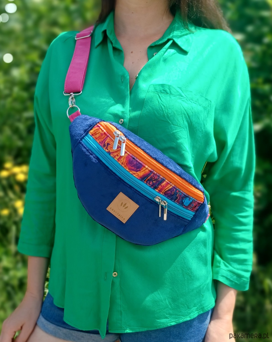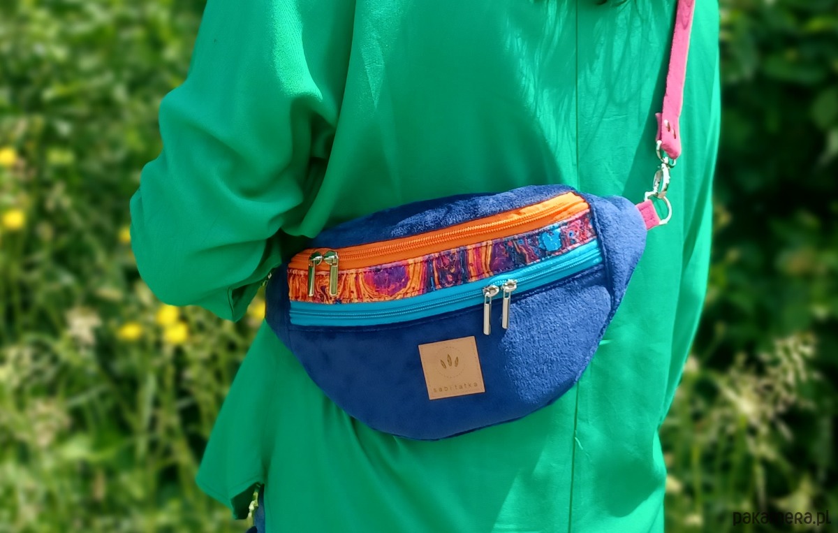Duża nerka damska wykonana z łączonych materiałów (welur tapicerski)