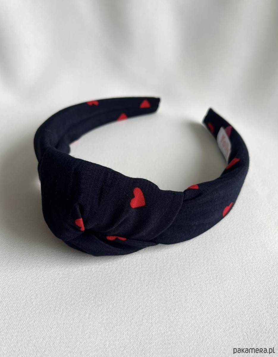 Granatowa opaska supełkowa w serduszka Hearts