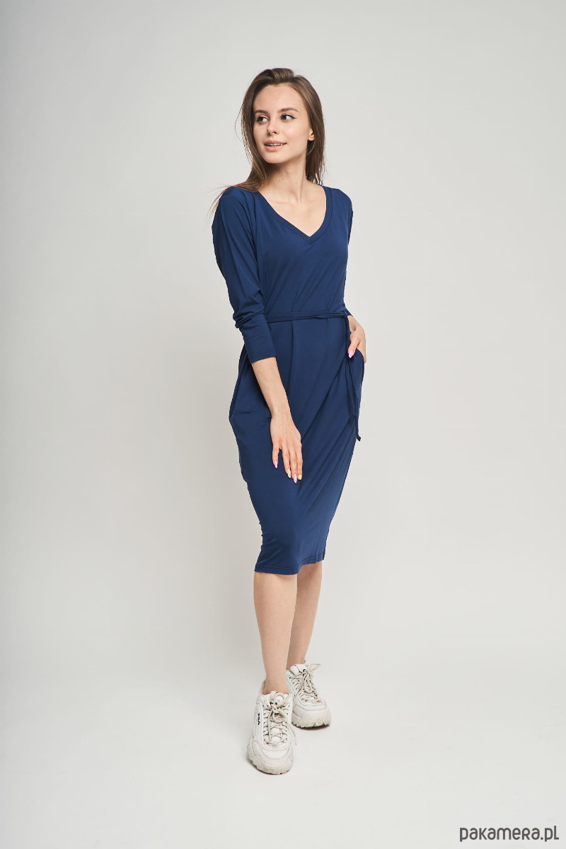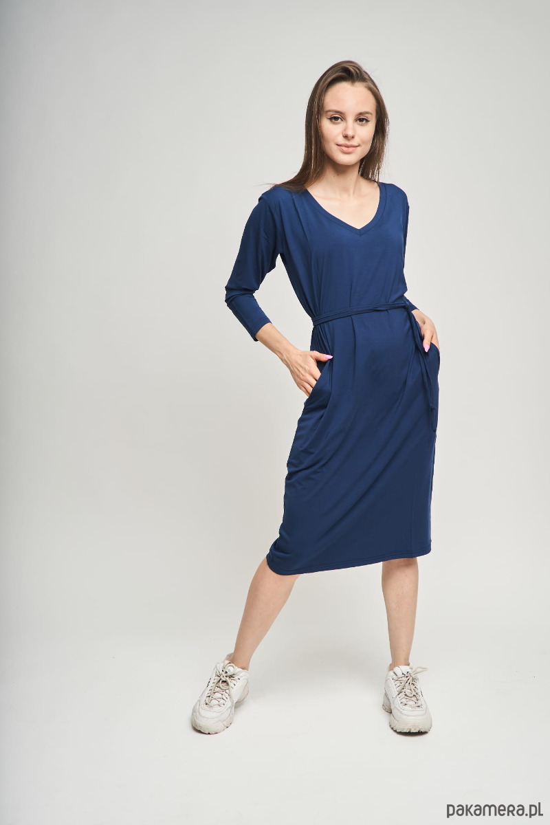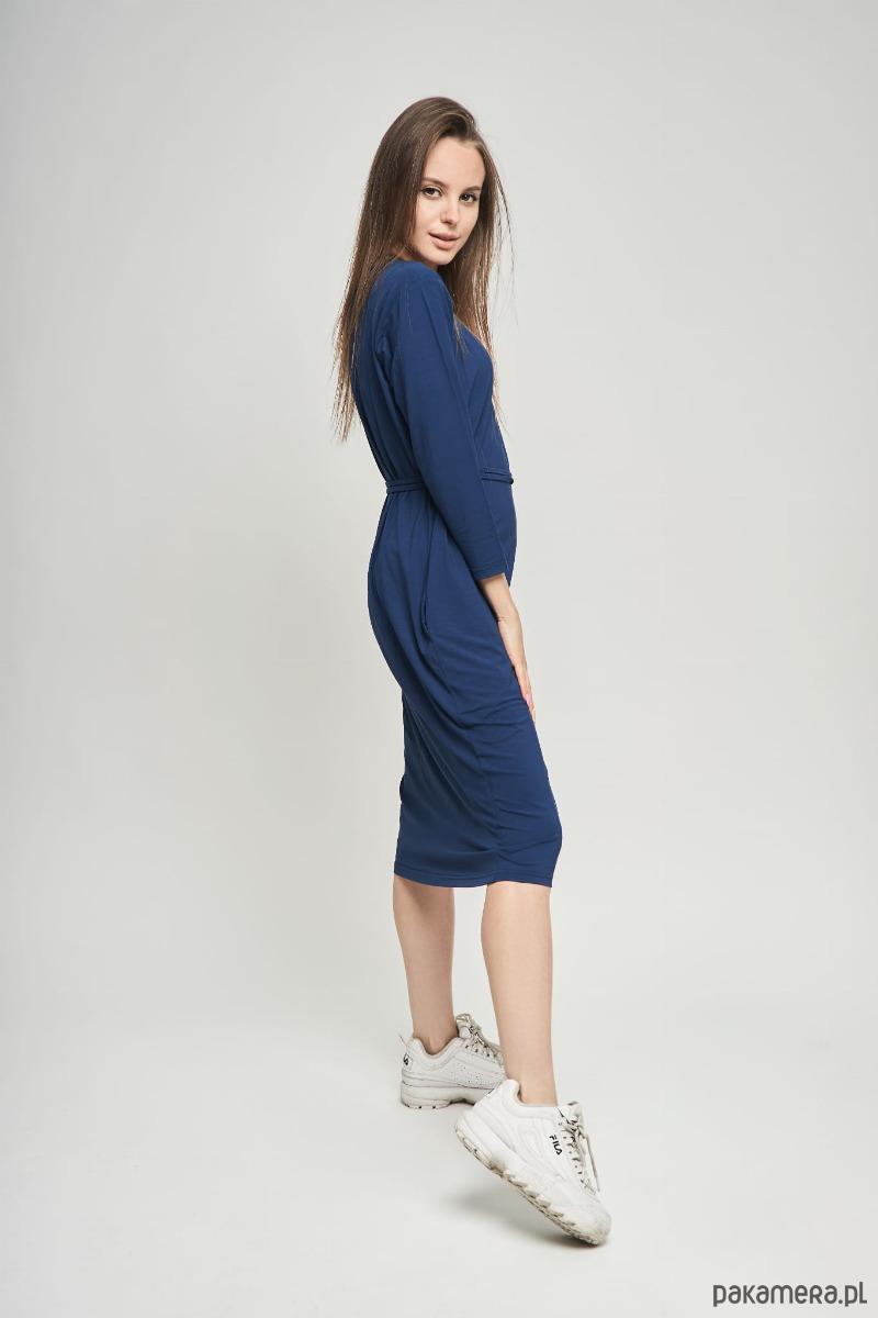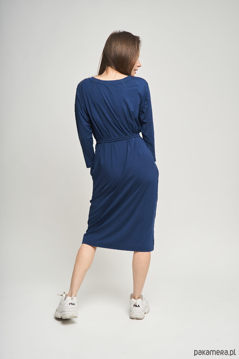 Granatowa sukienka damska midi z rękawem 3/4