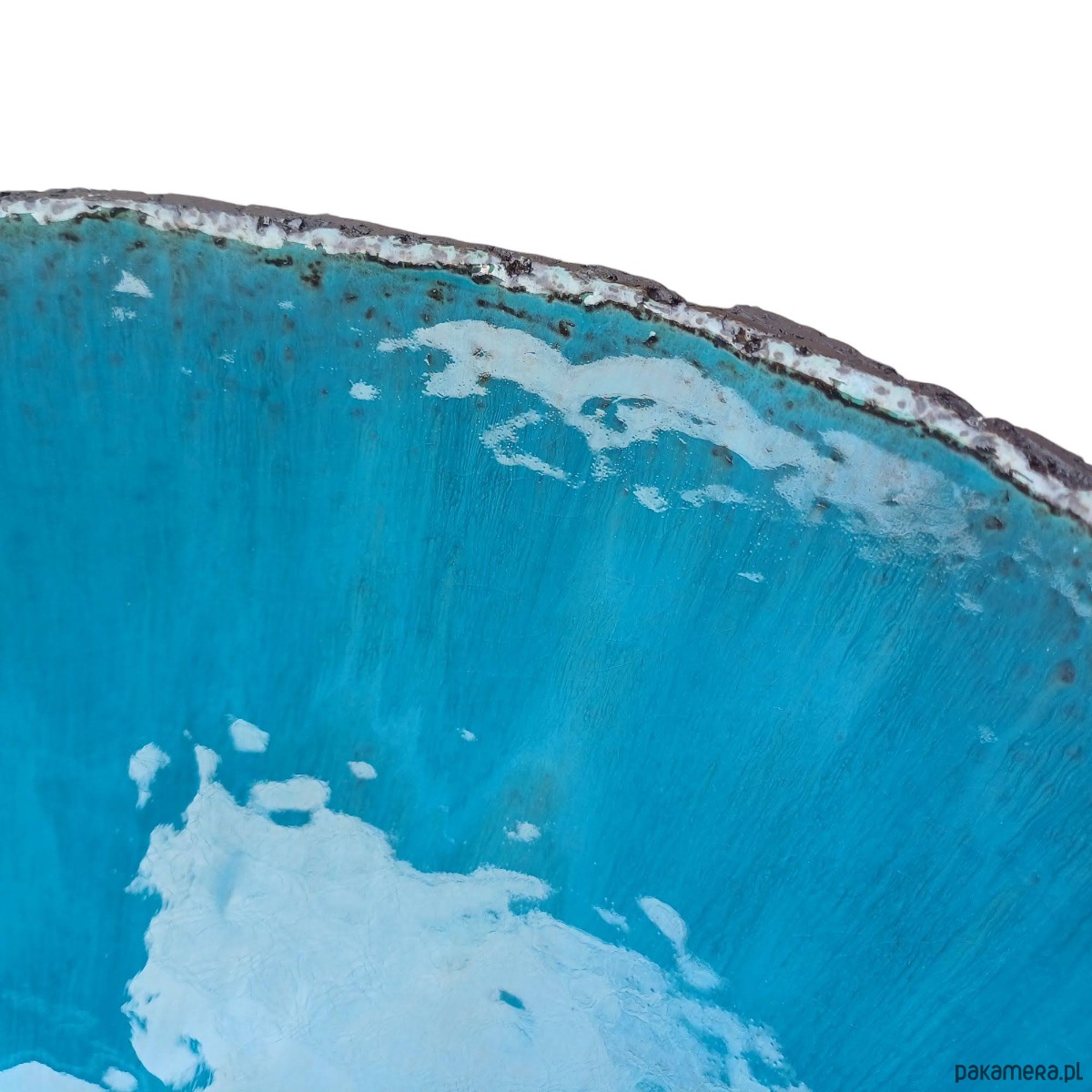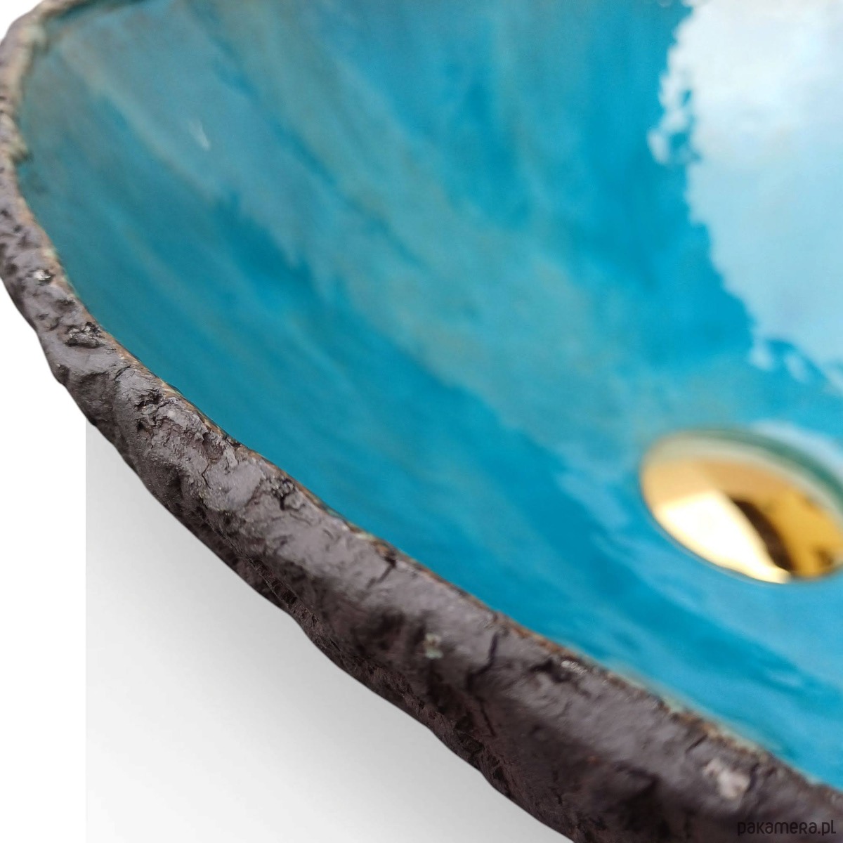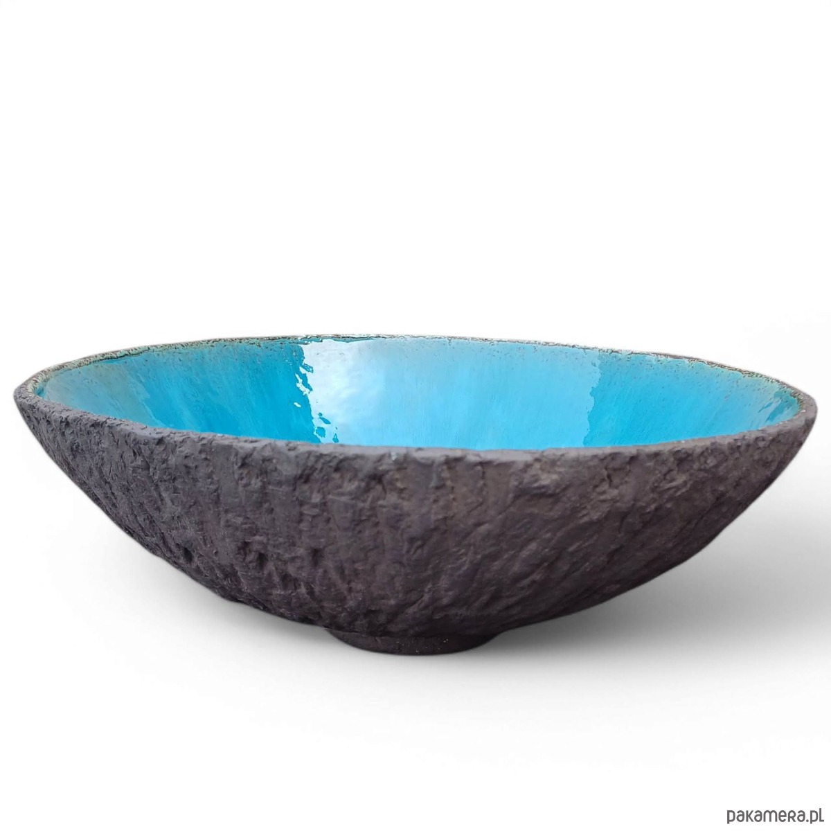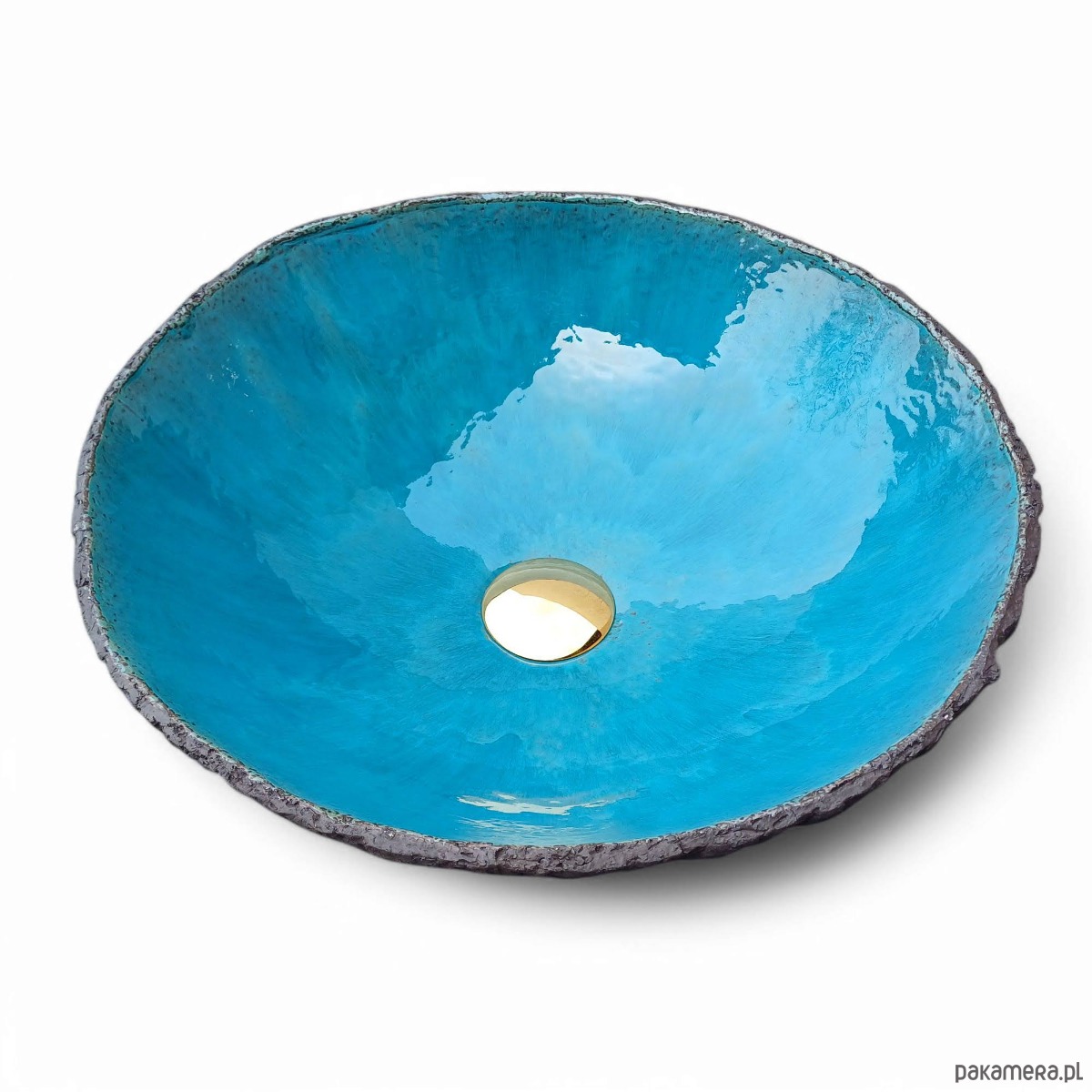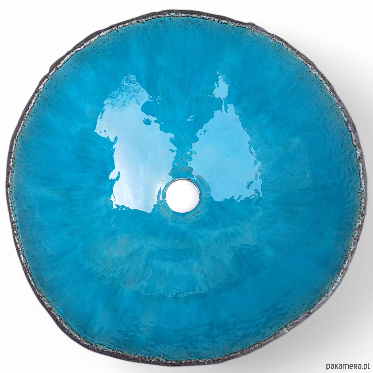 Nowoczesna umywalka nablatowa. Wykonana ręcznie. Szkliwo w kolorze niebieskim.