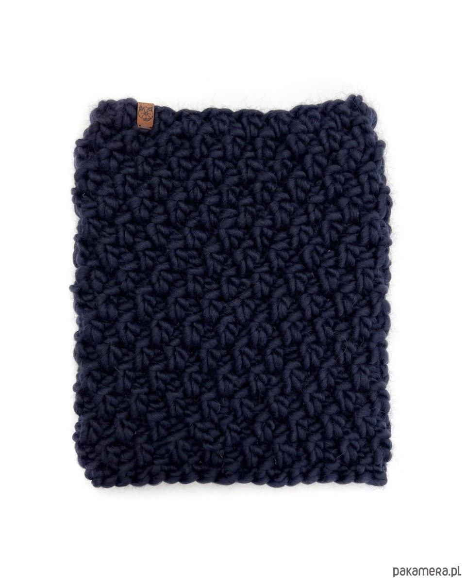 Jest w kształcie bezszwowej tuby, aby lepiej otulał szyję i wygodnie układał się na karku po zapięciu kurtki czy płaszcza. Wykonałam go na drutach dwustronnym ściegiem, więc możesz estetycznie go wywijać. Jest gruby, ale nie ciężki. Ciepły, miękki, o świetnych właściwościach termoregulacyjnych.