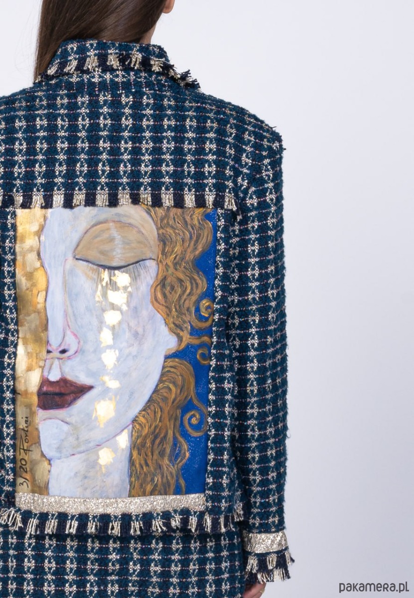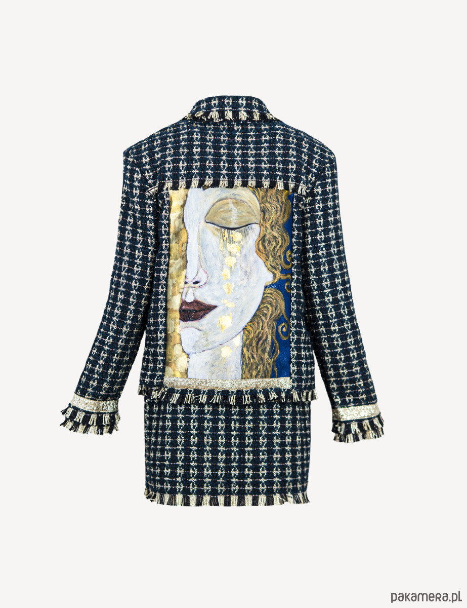 Przedstawiamy Wam nasz granatowy komplet z ręcznie malowanymi elementami. Przenieś się do artystycznej sfery i poczuj prawdziwą WOLNOŚĆ. Ręcznie malowane elementy obrazu w stylu Gustava Klimta sprawią, że Twój look będzie przepełniony fantazją, a luźny krój doda Twojej stylizacji niezwykłej swobody.