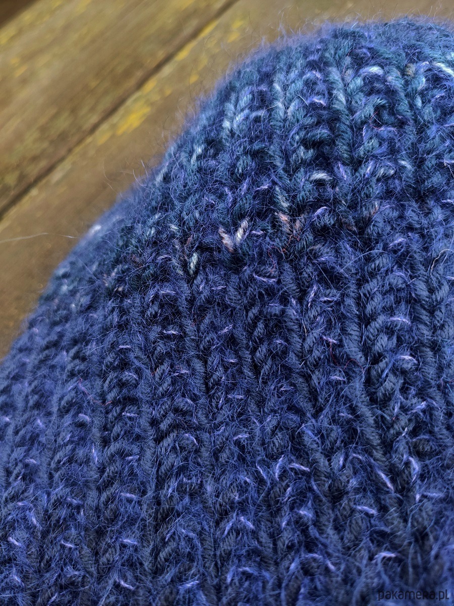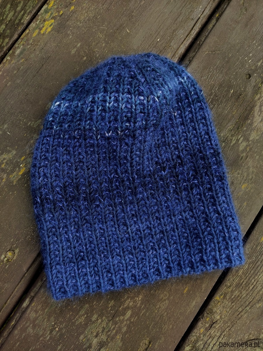 Ciepła, mięsista, miękka i cudowna w dotyku czapka wykonana ręcznie na drutach. Połączyłam cieniutką nitkę 75% kid moher/25% jedwab z włóczką o sprężystym skręcie (100% merino). Czapka bezszwowa, lejąca.