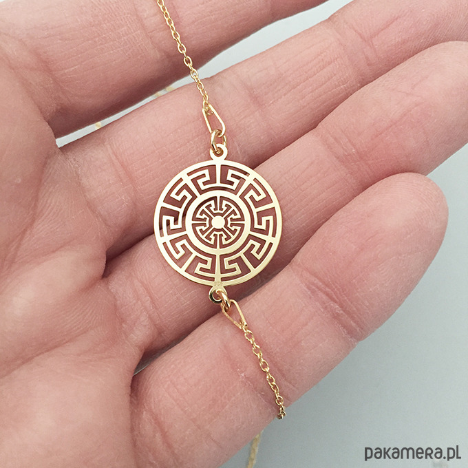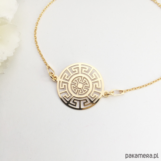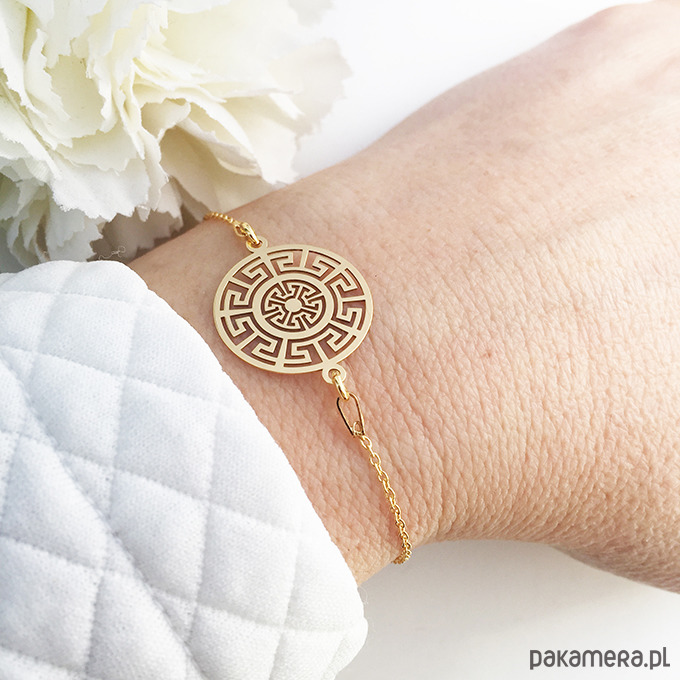 Elegancka bransoletka z greckim motywem ze stylizowaną zawieszką w kształcie antycznego meandra.
