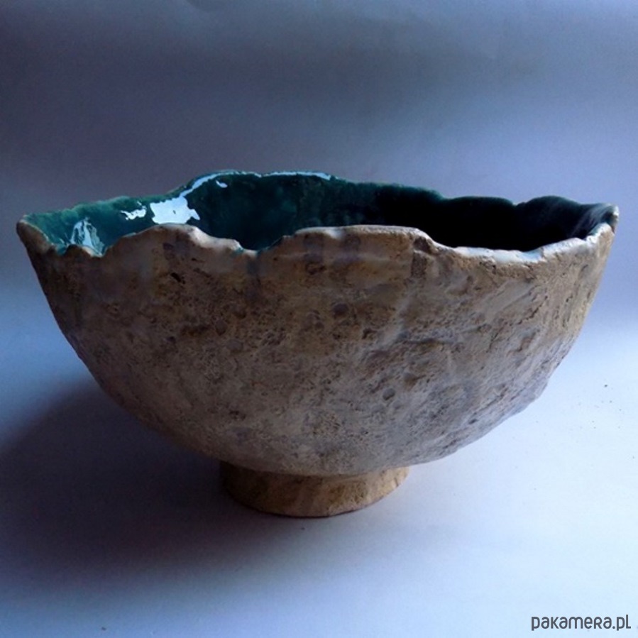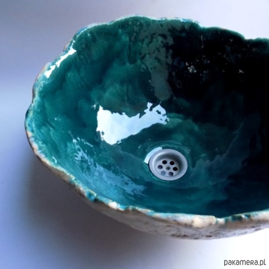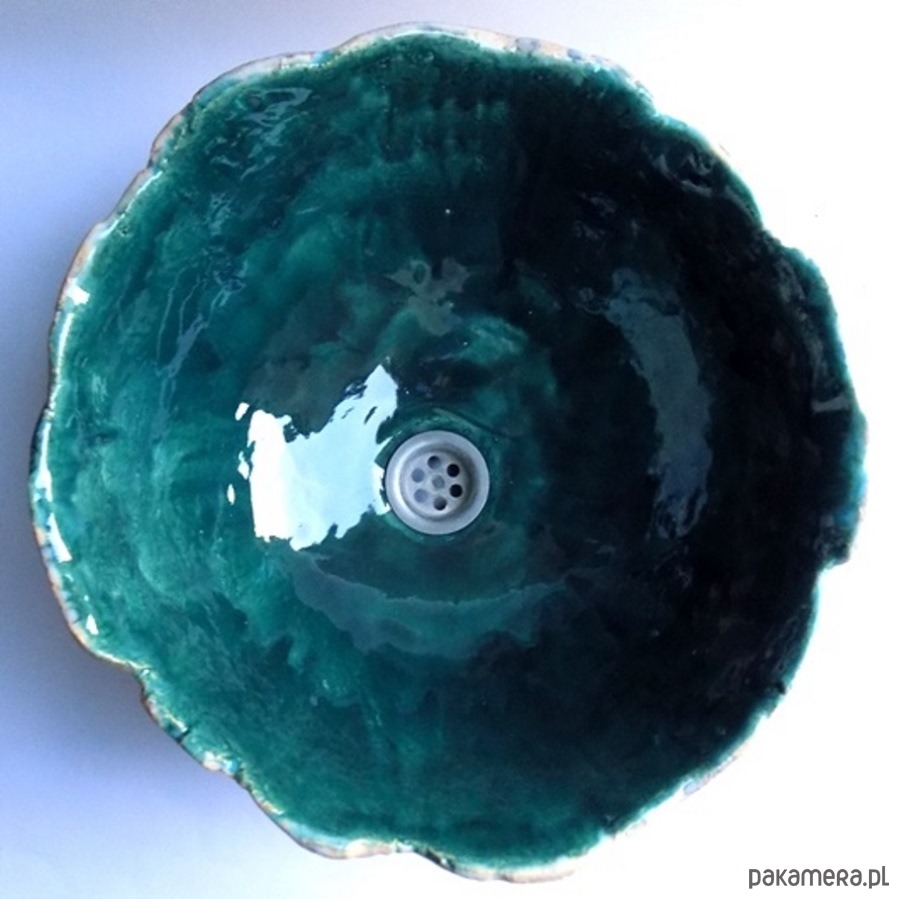 Umywalka ceramiczna, ręcznie formowana i szkliwiona, nablatowa, średnica umywalki ok. 40 cm, wysokość ok. 18 cm, polecam.