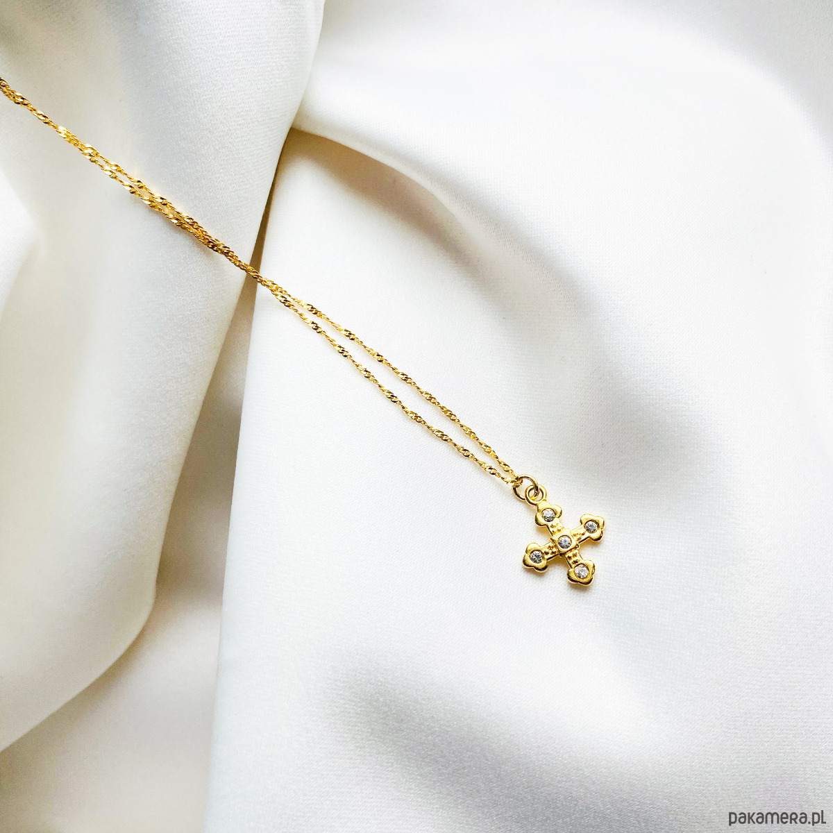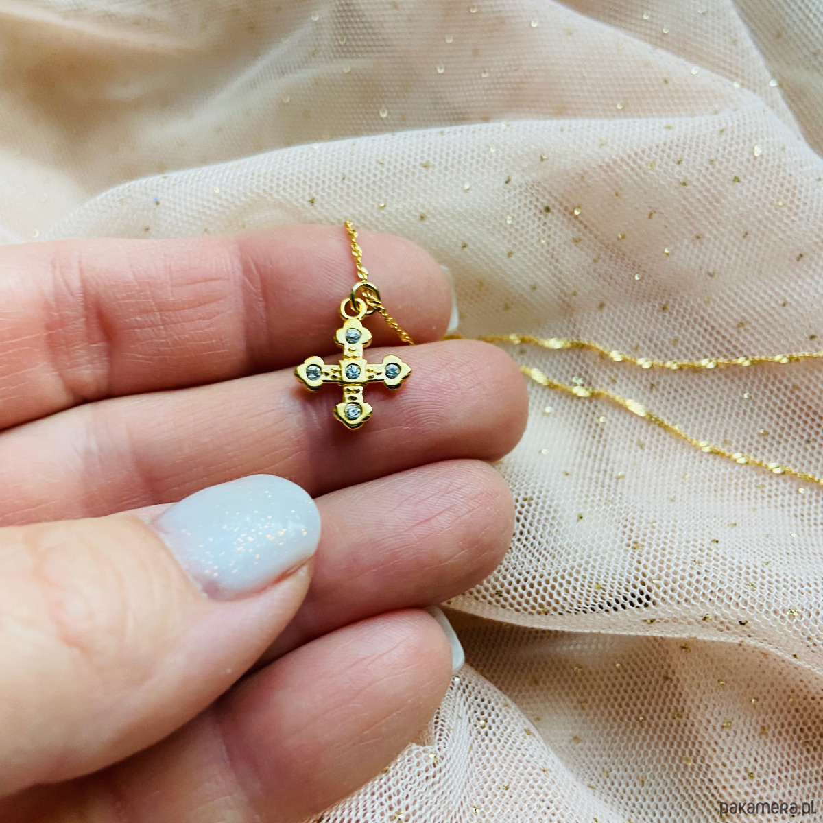 Pokochasz ten naszyjnik z greckim krzyżykiem . Wyjątkowo efektowny, można go nosić pojedynczo lub łączyć z innymi naszyjnikami. Całość jest wykonana ze srebra próby 925 złocona 24 k złotem.