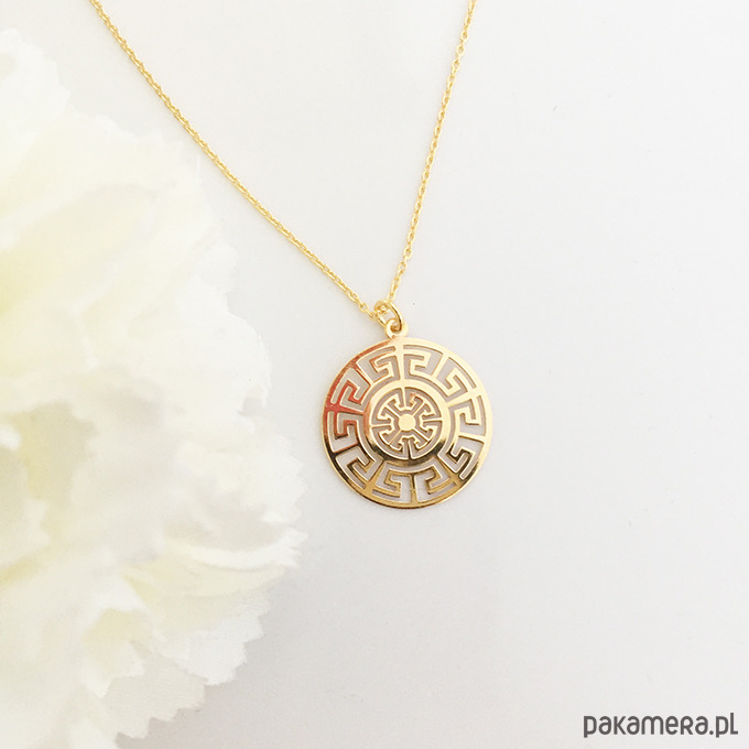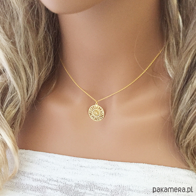 Pokochasz ten naszyjnik z greckim motywem w stylu boho, ze stylizowaną zawieszką w kształcie antycznego meandra. Wyjątkowo efektowny, można go nosić pojedynczo lub łączyć z innymi naszyjnikami. Całość jest wykonana ze srebra próby 925 złocona 24 k złotem.