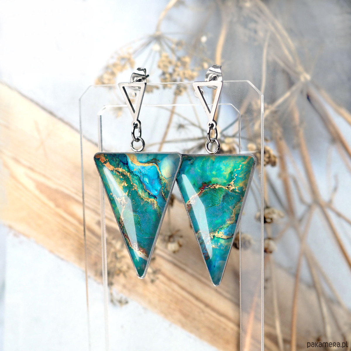 GREEN MARBLE kolczyki nowoczesne, geometryczne