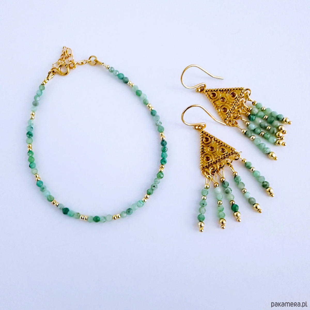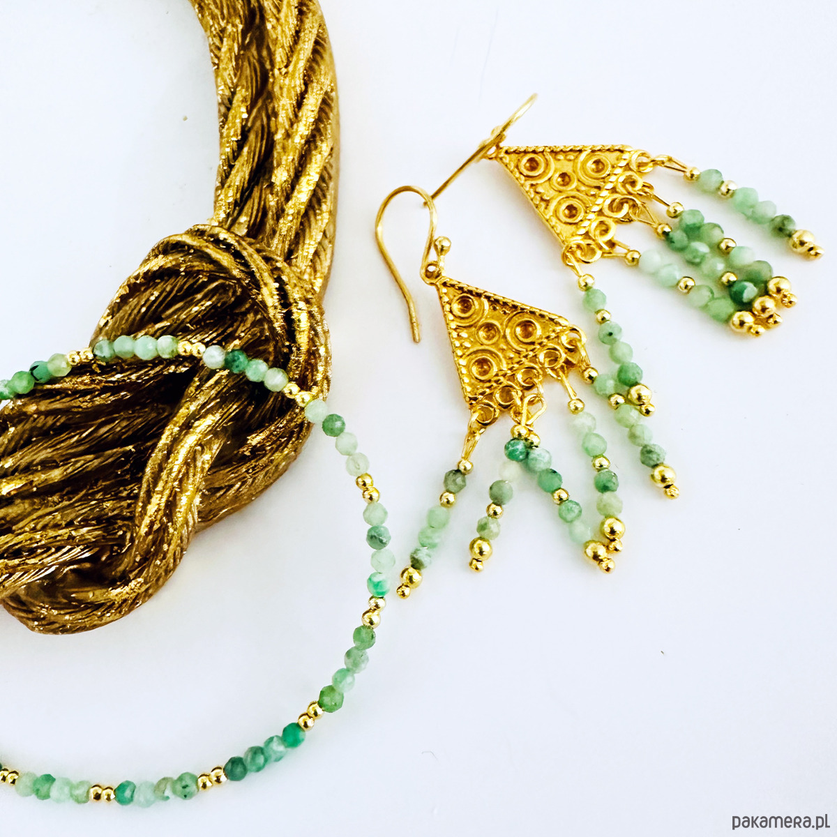 GREEN MOOD komplet bizuterii SZMARAGDY, kamienie naturalne