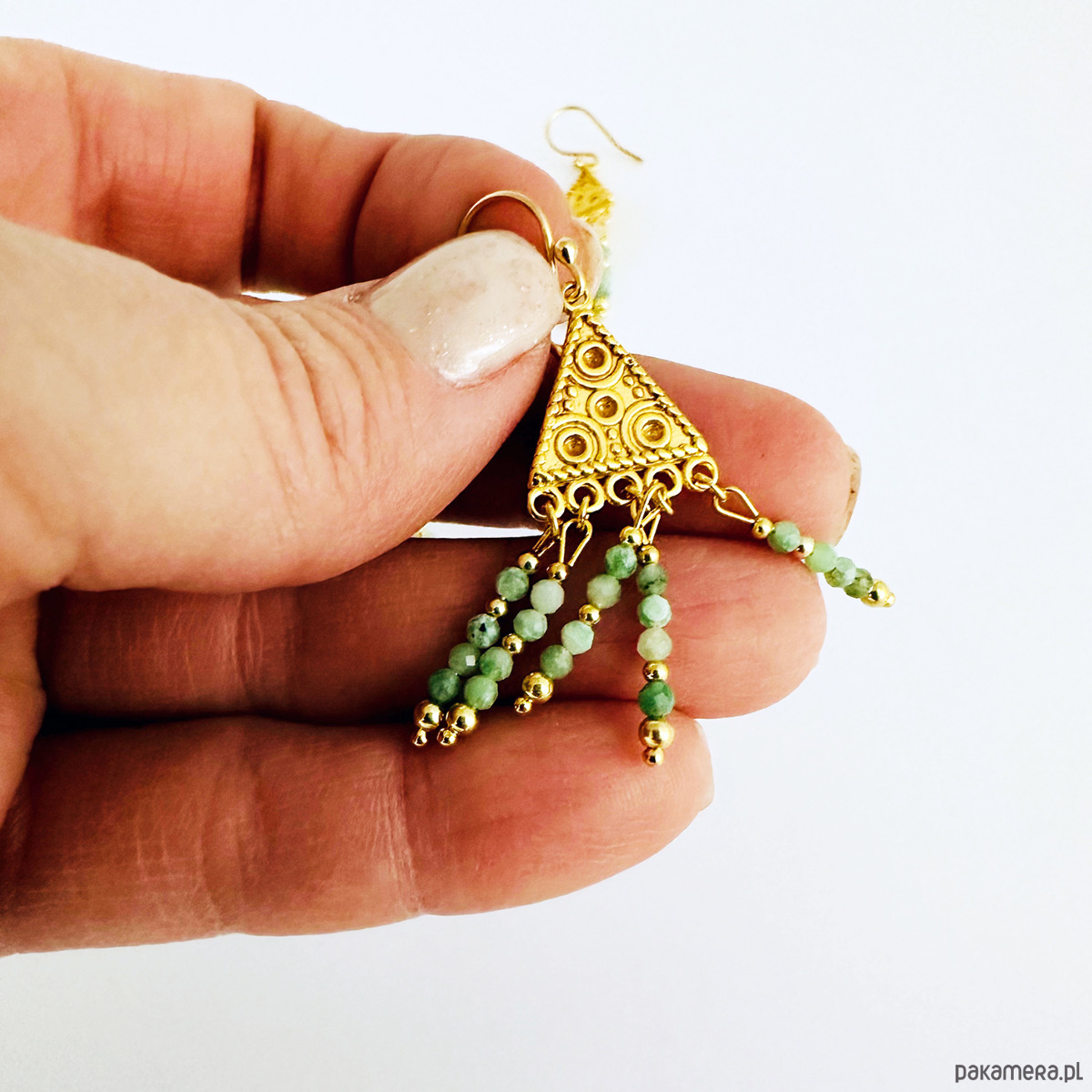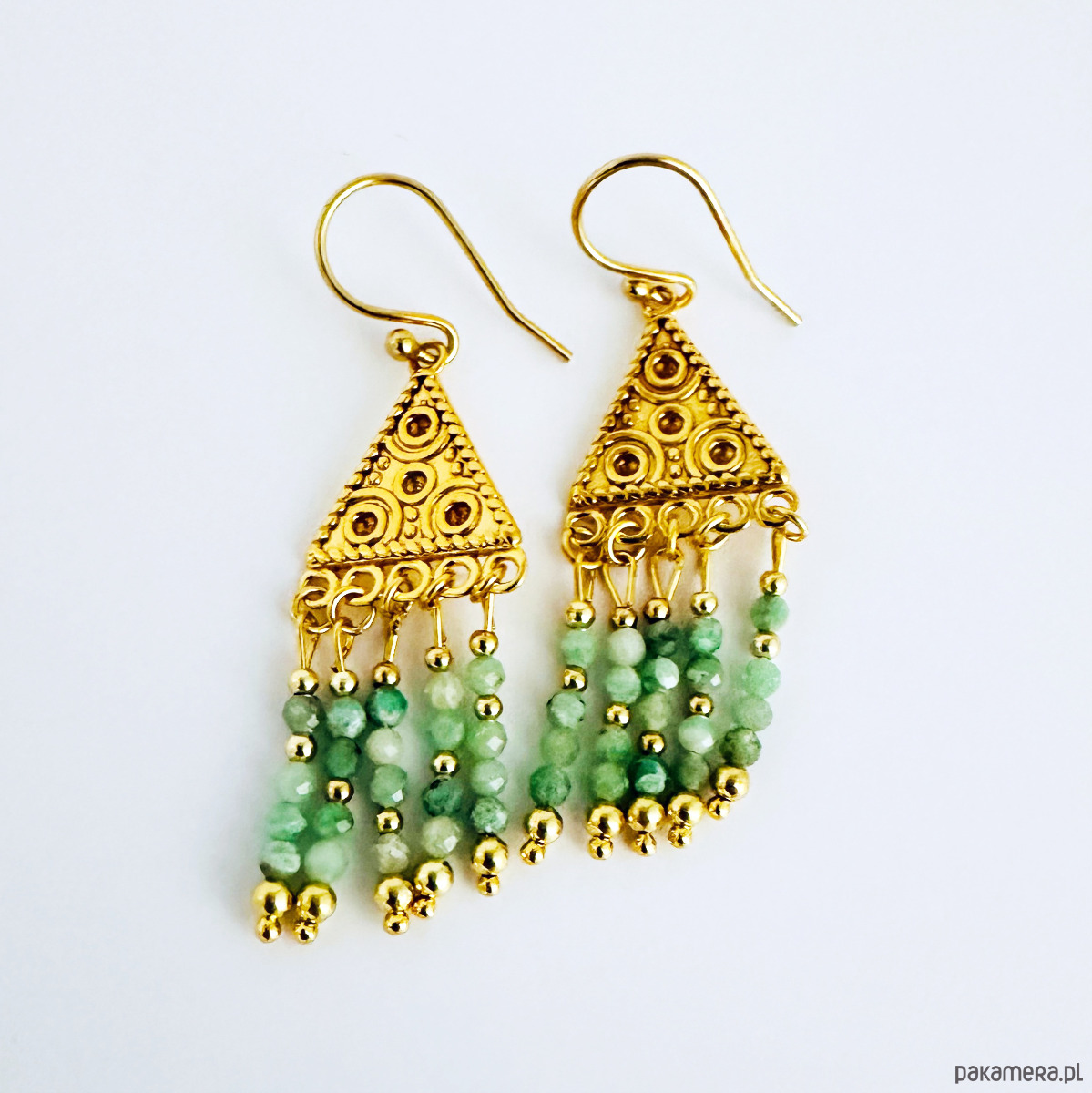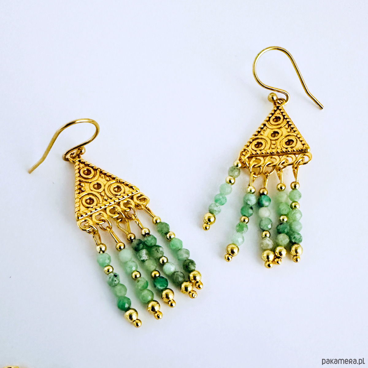 Wykonane ręcznie z naturalnych szmaragdów, srebra pozłacanego 24-karatowym złotem oraz ozdobione koralikami i elementami, .