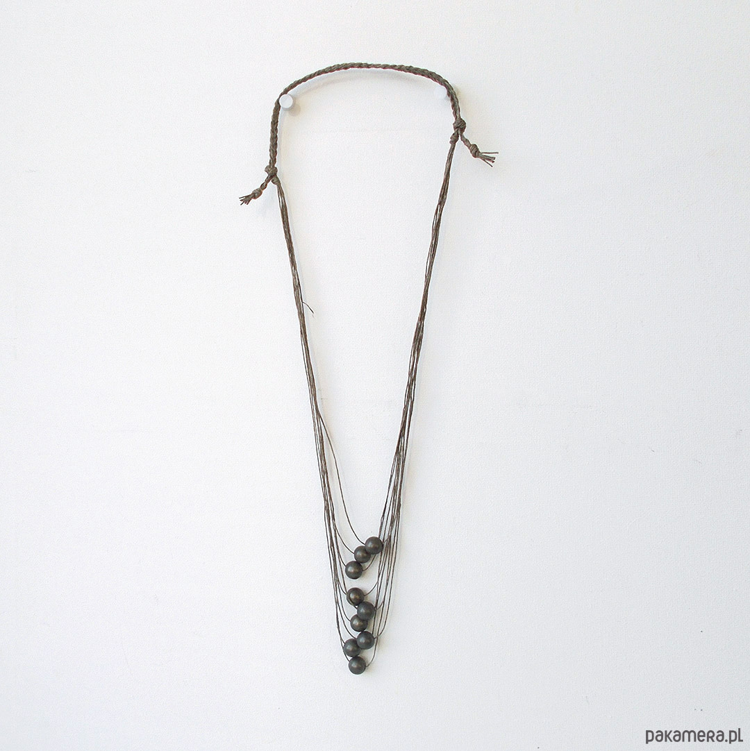 Lniany naszyjnik z kulkami matowego hematytu