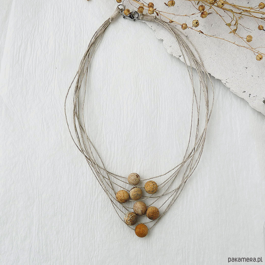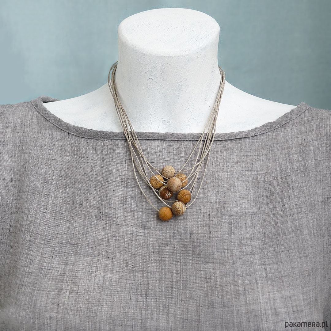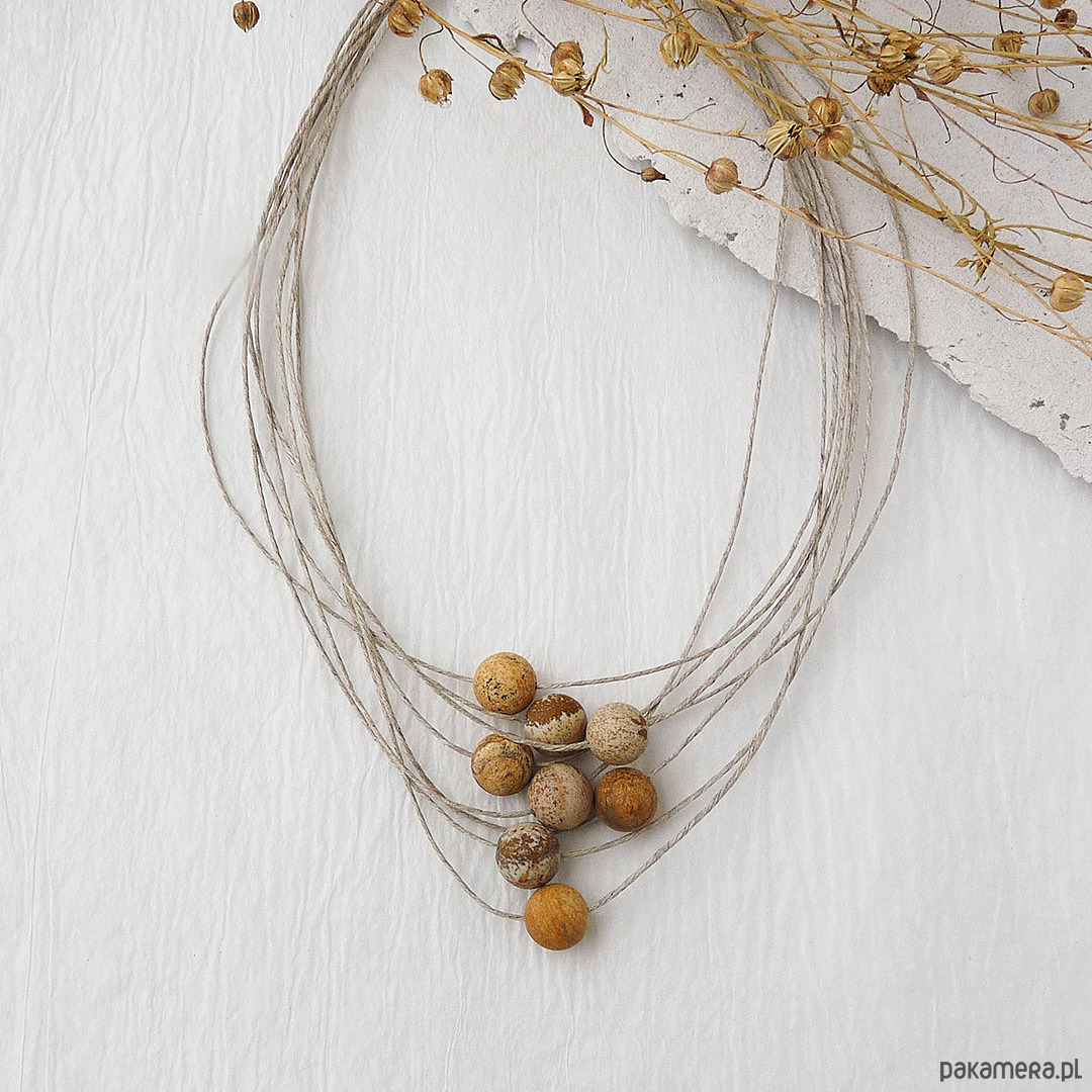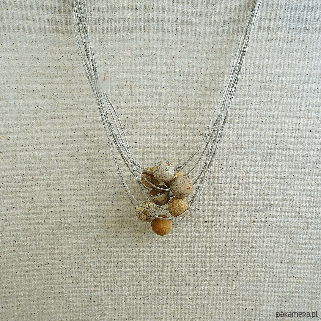 Lniany naszyjnik wykonany z nitek naturalnego lnu i kulek