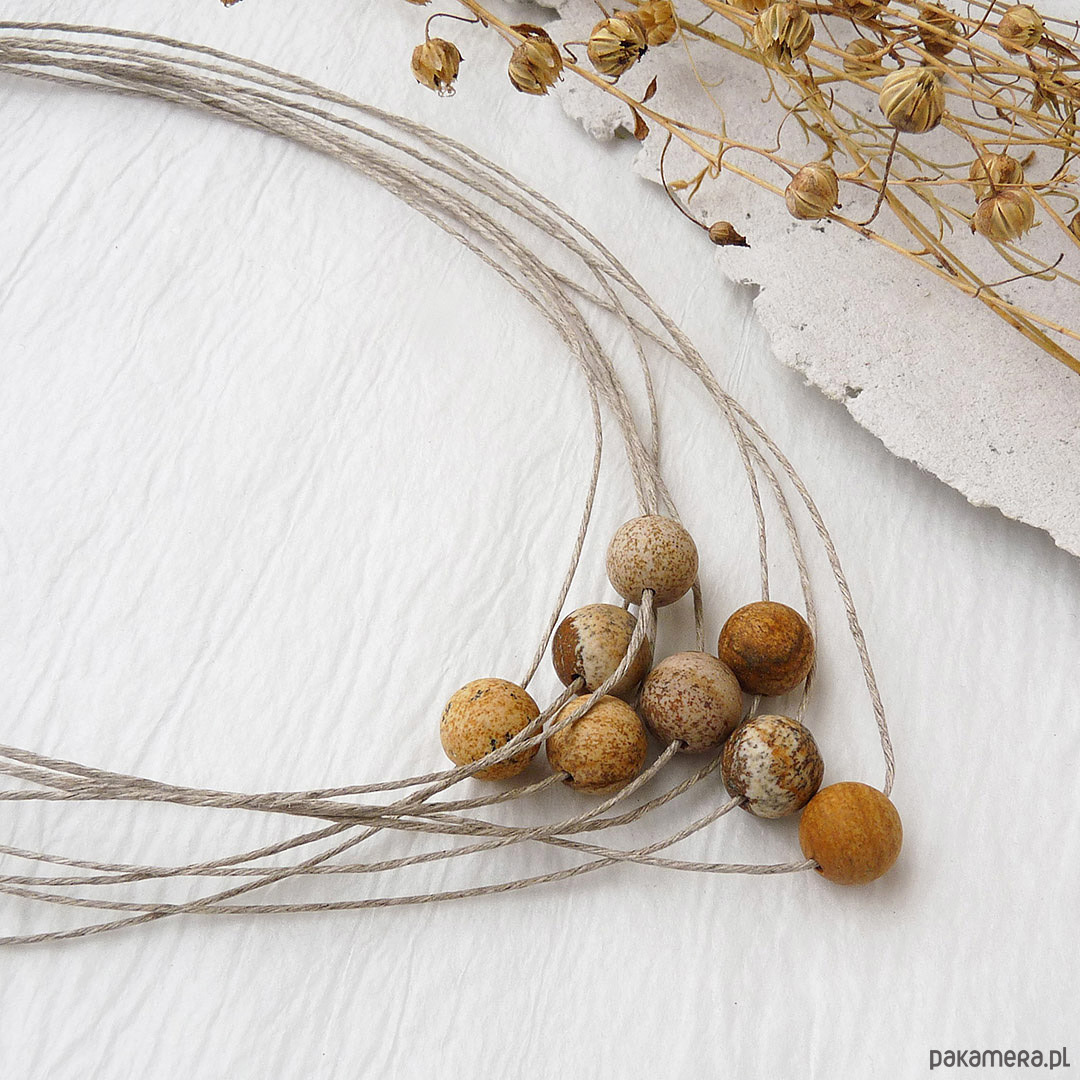 Lniany naszyjnik wykonany z nitek naturalnego lnu i kulek