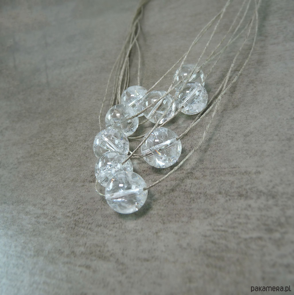 kryształ górski 12 mm, len naturalny, stal szlachetna srebrna