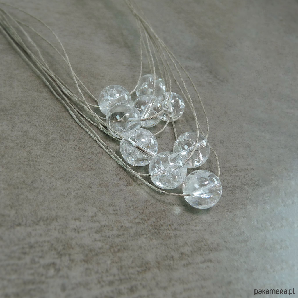 Naturalny naszyjnik lniany z kulkami kryształu górskiego