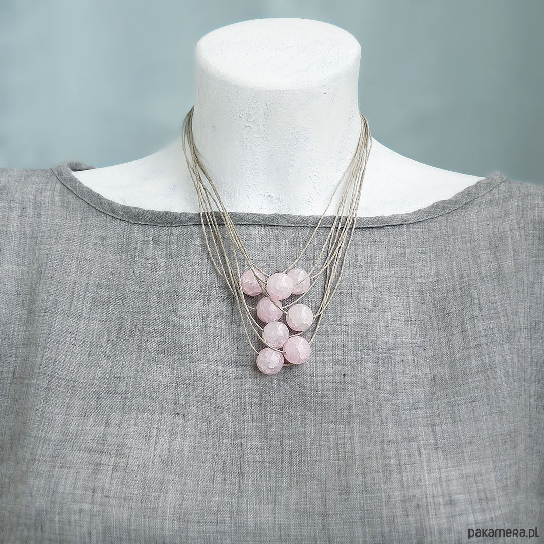 Lniany naszyjnik wykonany z nitek naturalnego lnu i szklanych kulek o średnicy 12 mm