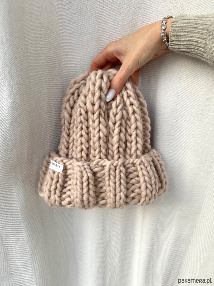 Gruba delikatna wełniana czapka Soho beanie 100% wełna handmade
