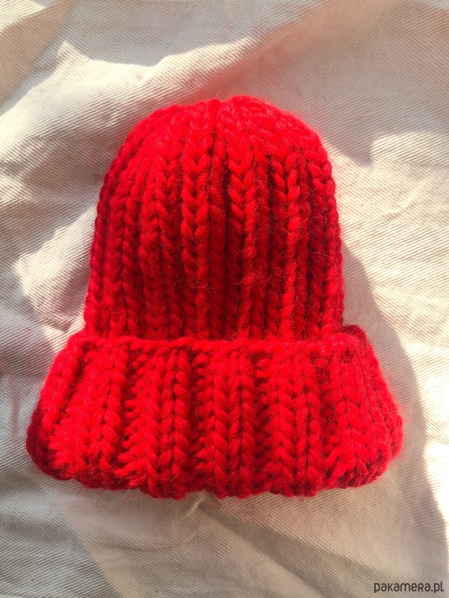 Gruba wełniana czapka beanie 100% wełna kolor świąteczny czerwony